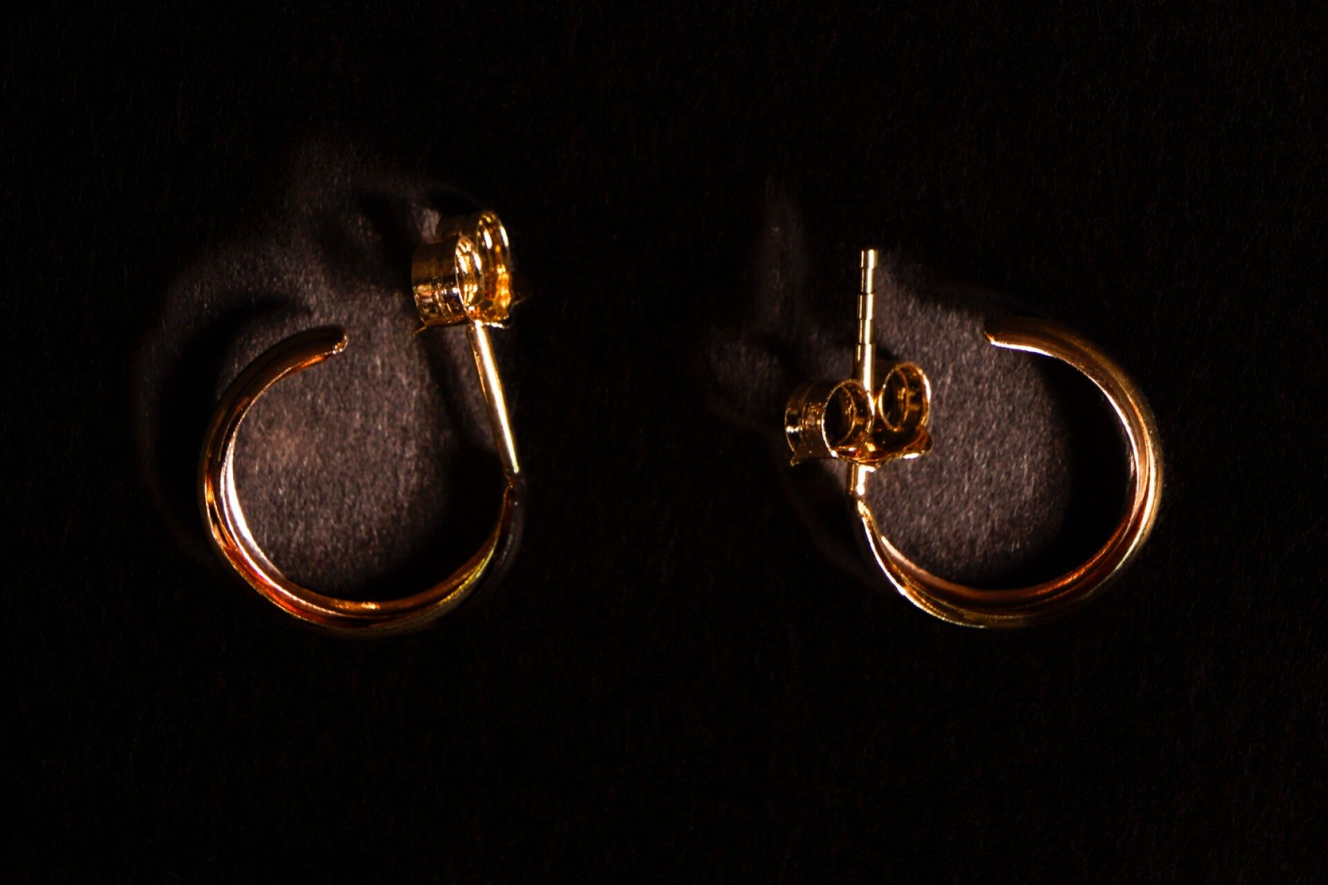 Pair of earrings in three golds (750/1000) with three beads