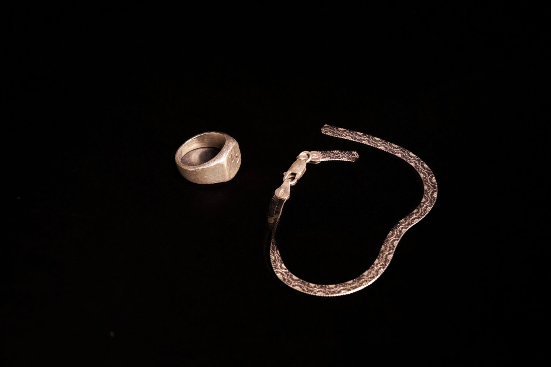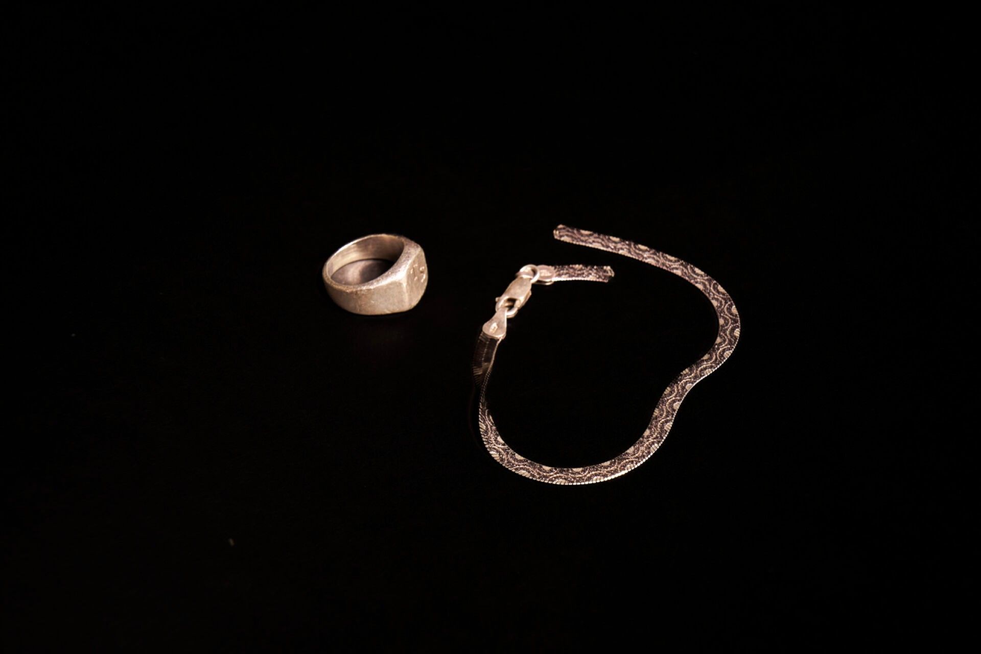 A signet ring and a silver bracelet. Weight 4.4 g (accident)