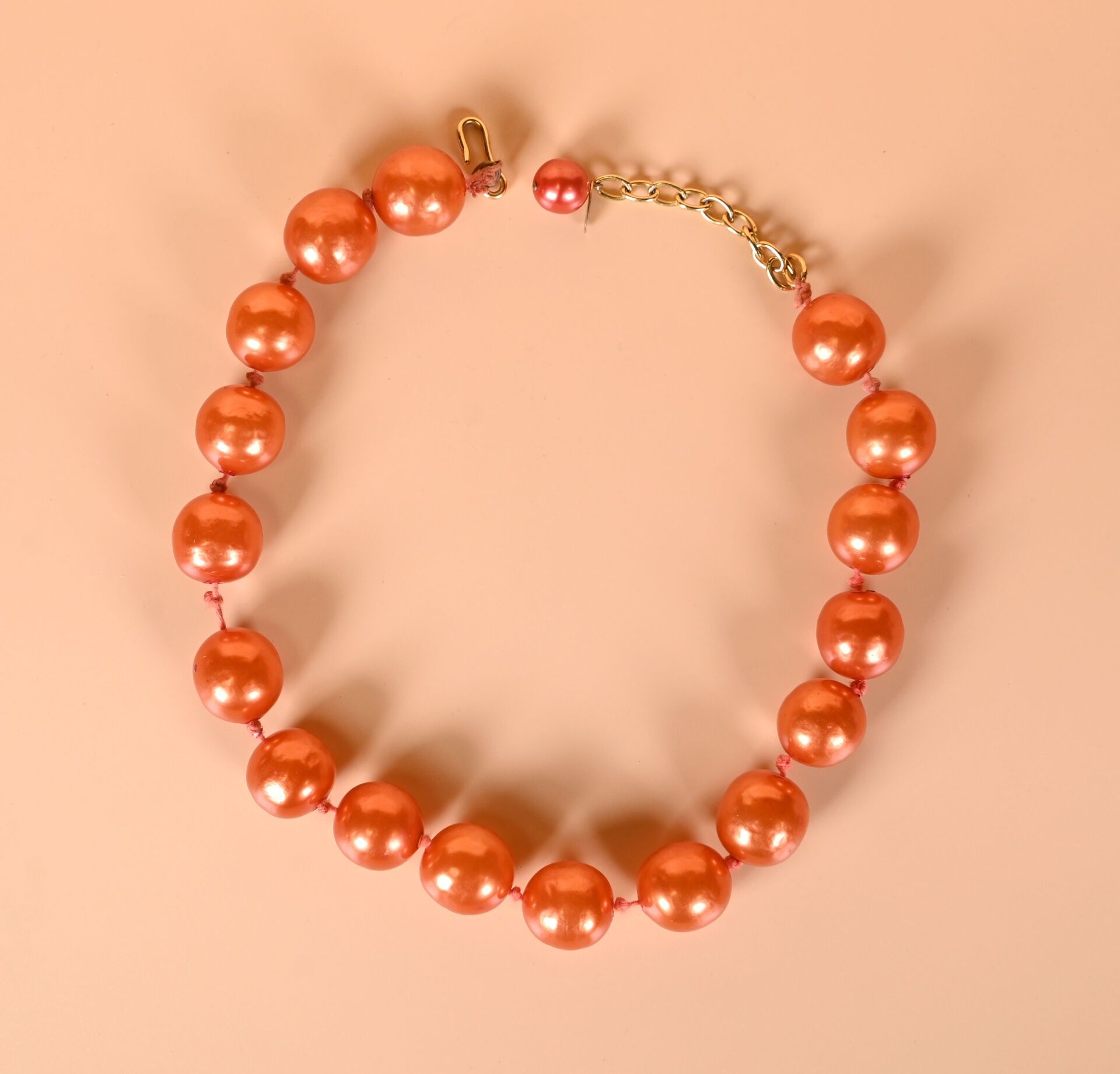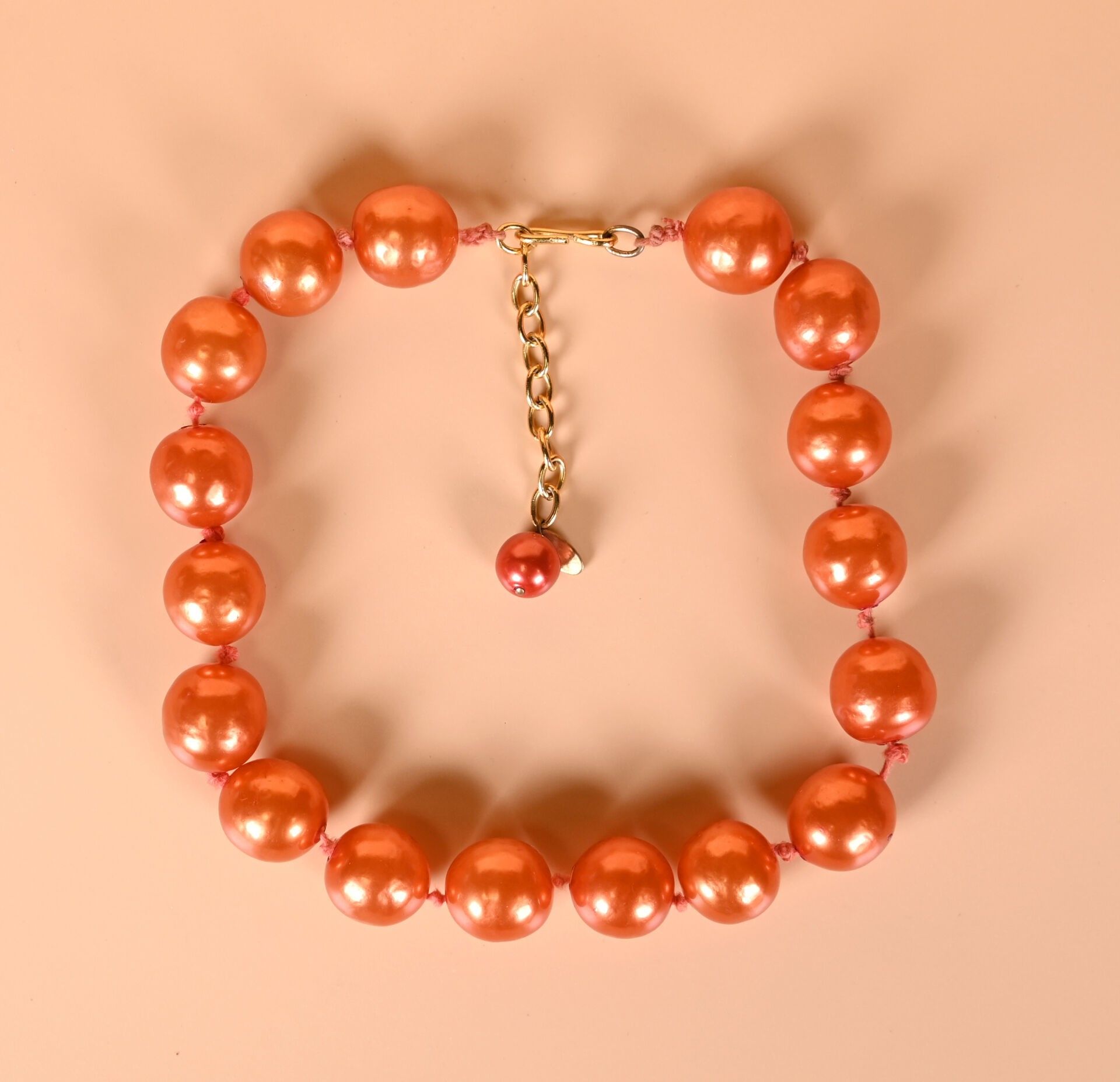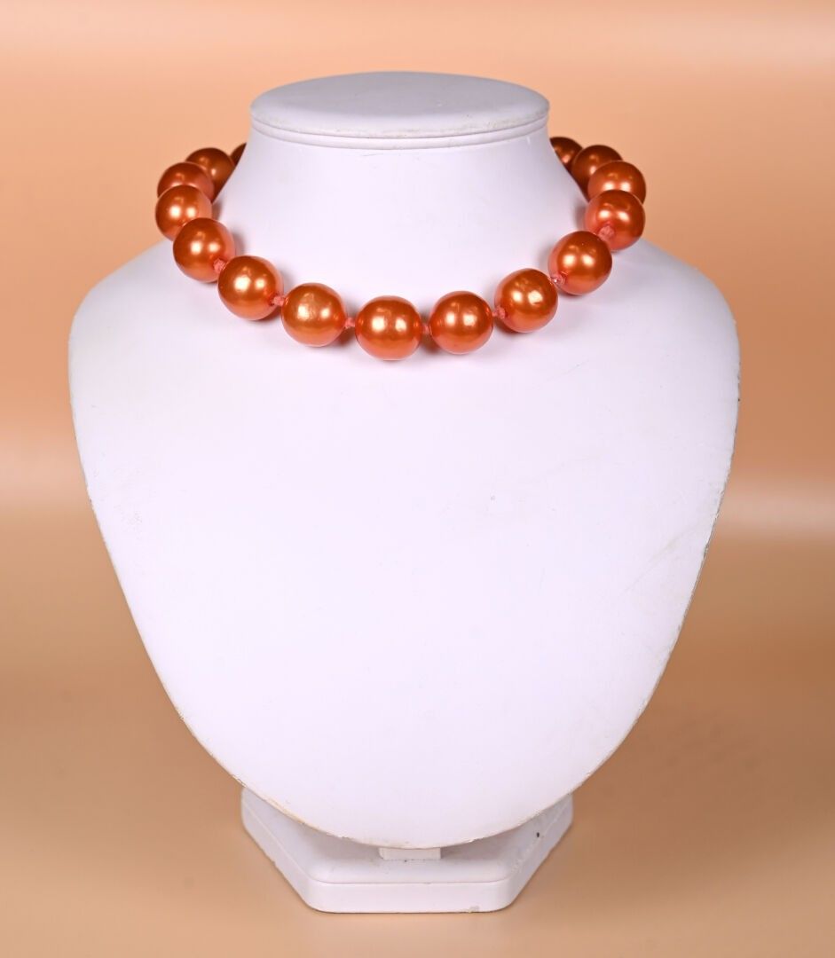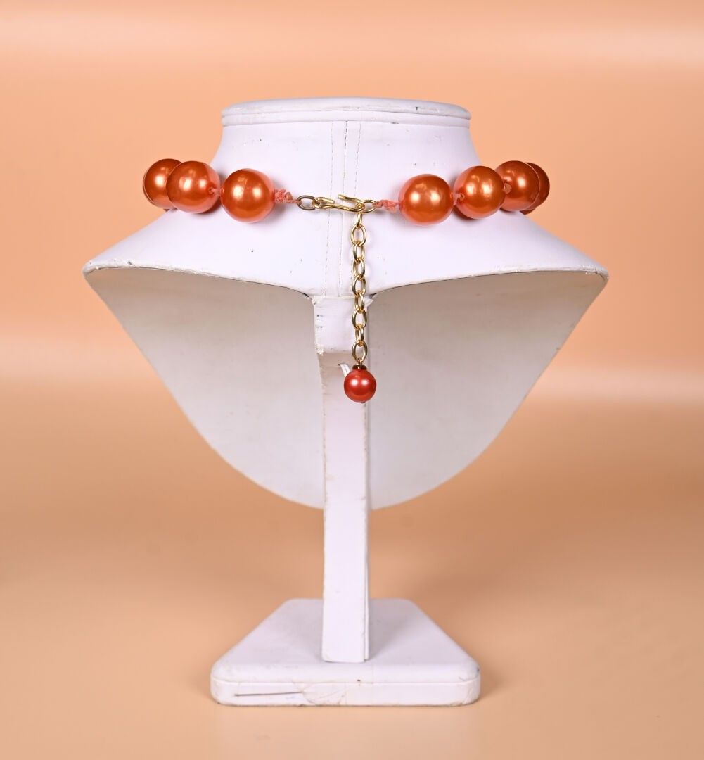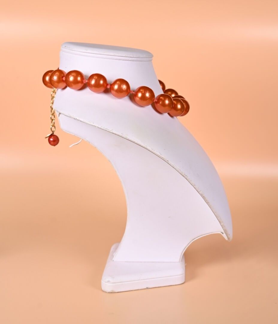 CHANEL and GRIPOIX ? Copper lacquered glass beads necklace. Marked. 2CC5. Length: 53 cm with clasp.
