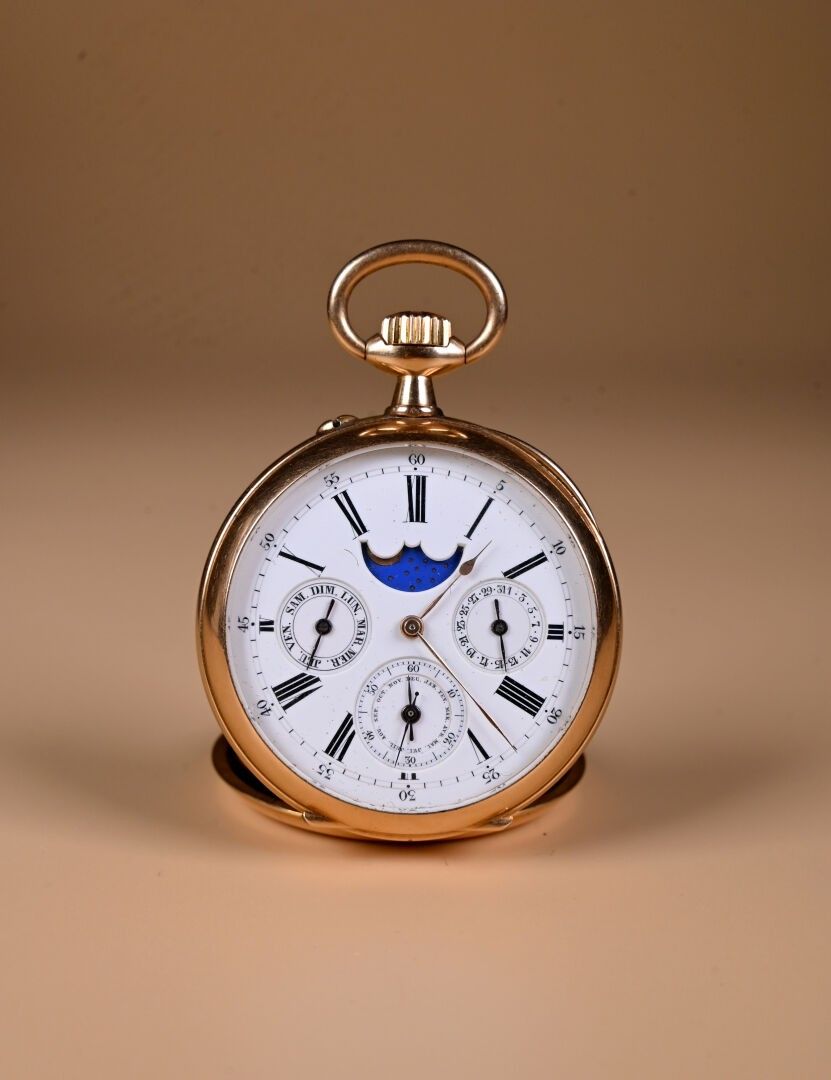 Complication pocket watch in 18K 750/1000 yellow gold with e…