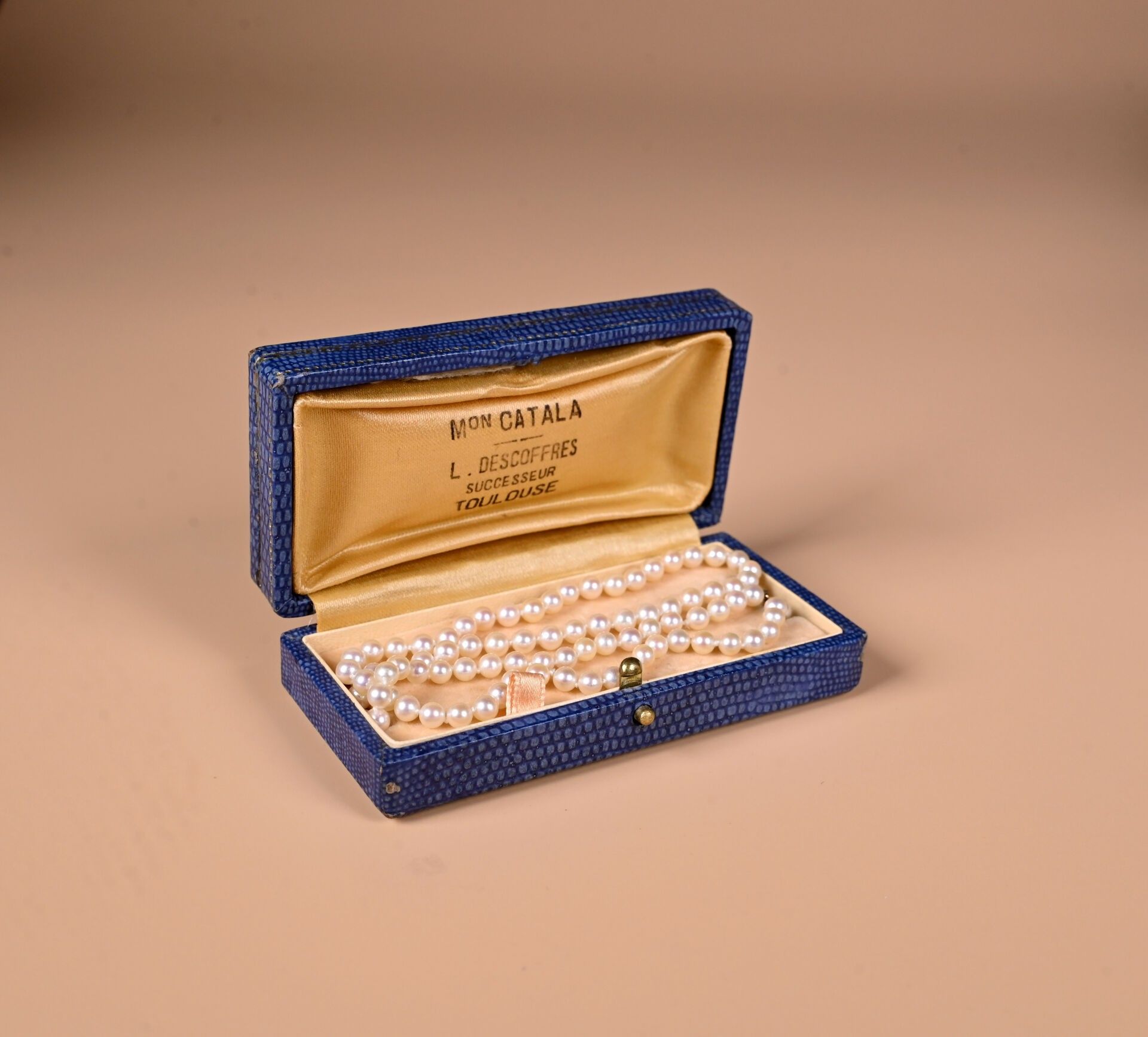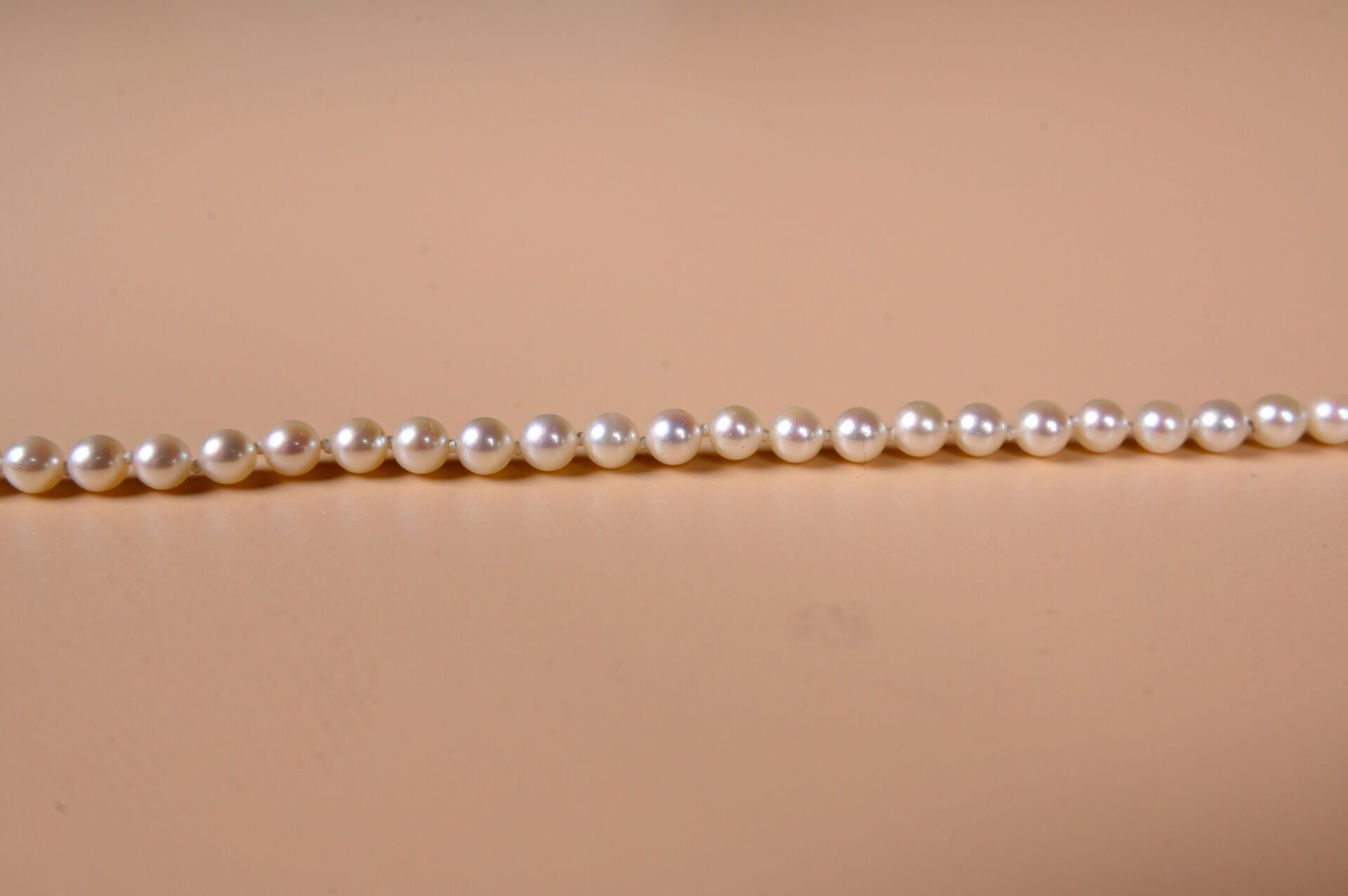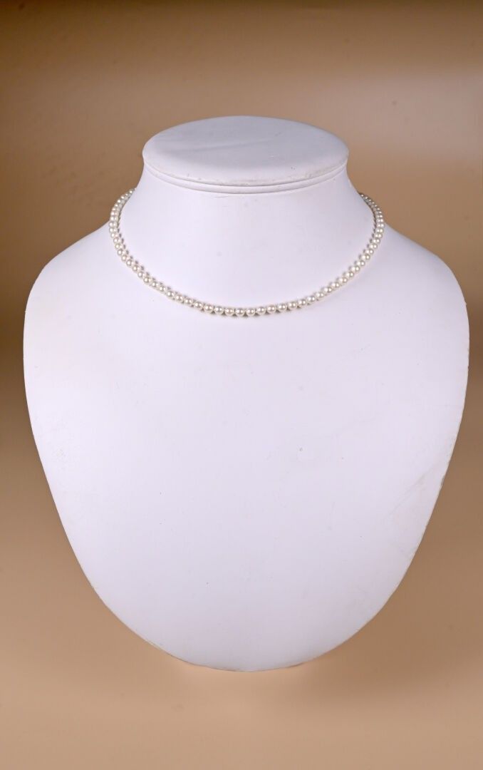 Necklace of small choker cultured pearls. 750 thousandths 18k gold clasp. Length 42 cm. With case.