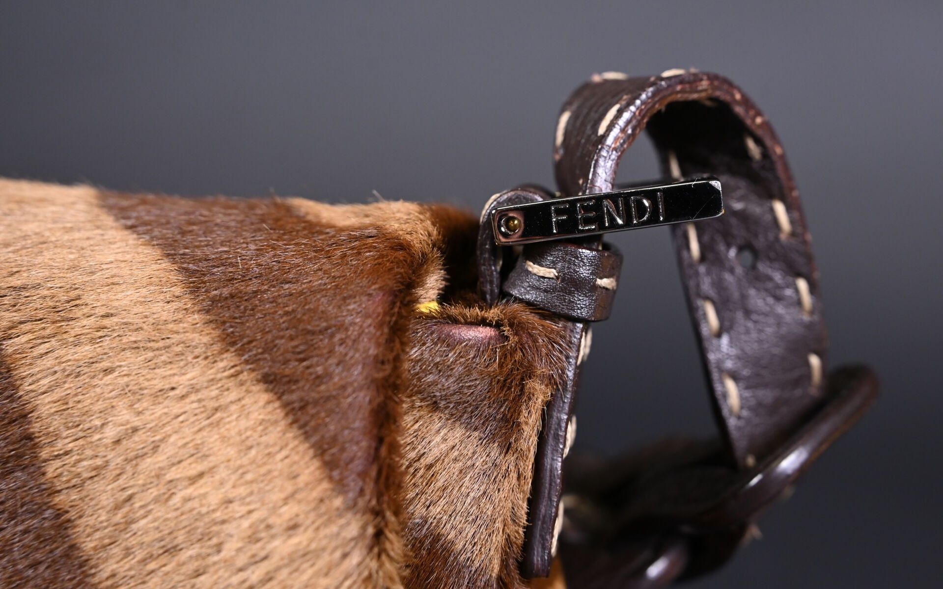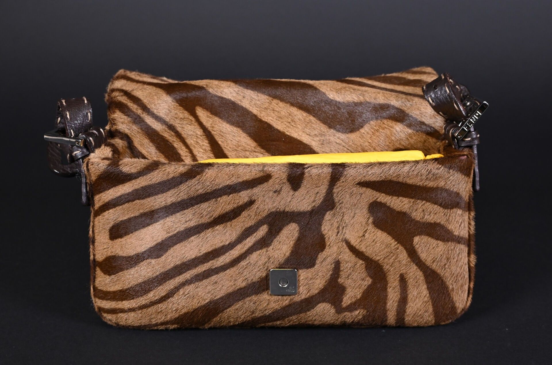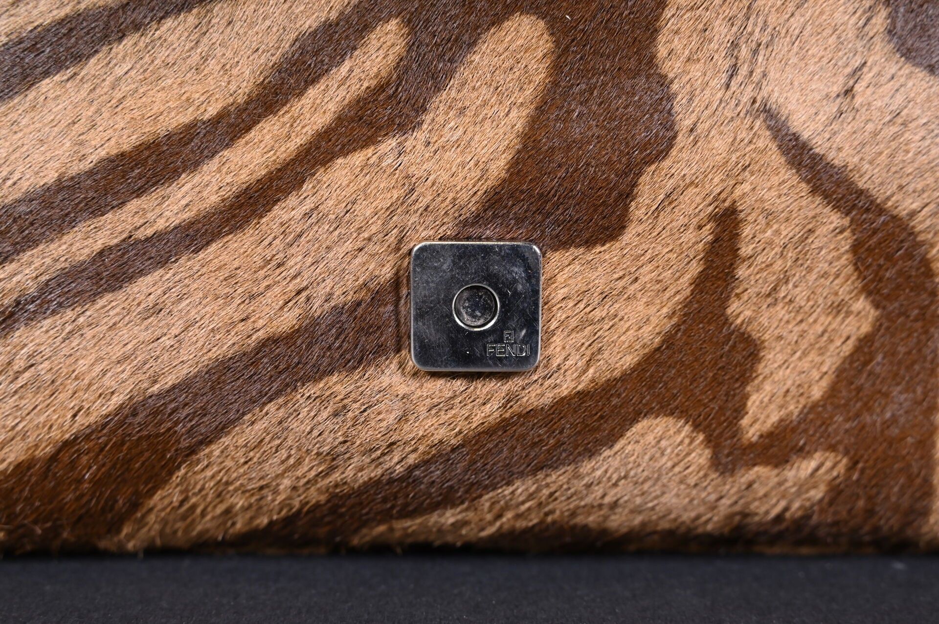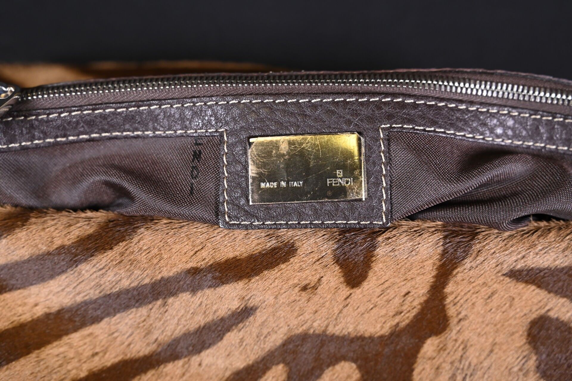 Premium FENDI. Baguette handbag in tiger-stained printed cowhide, Ta…