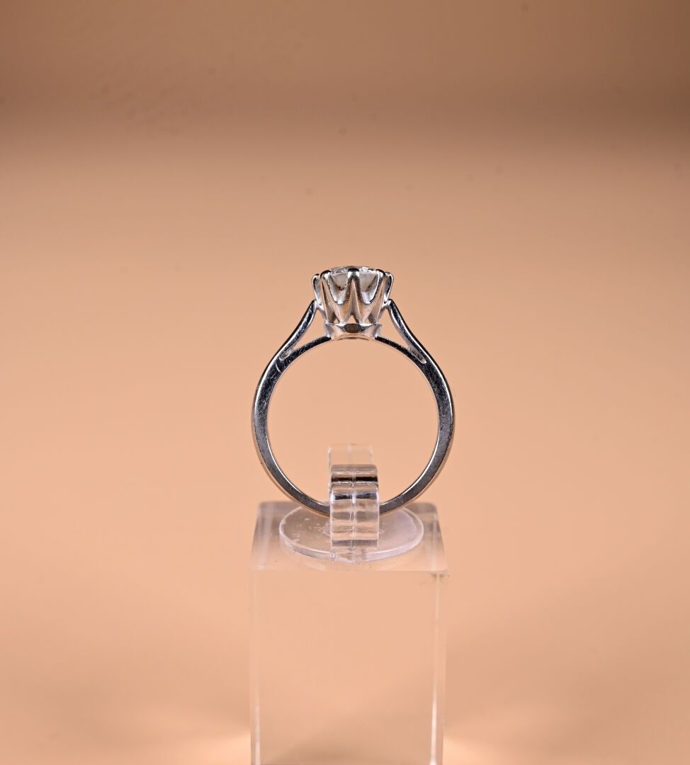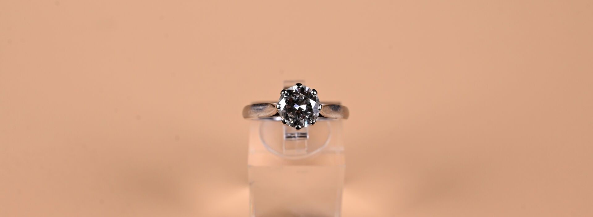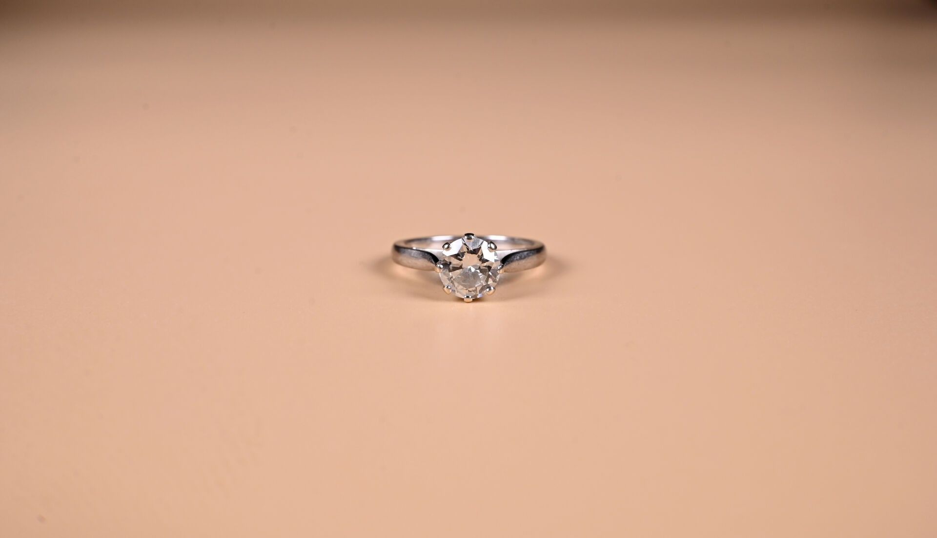 Solitaire in 18k 750/1000 white gold and 850/1000 platinum with a modern-cut diamond weighing approximately 1.35 carats (estimated quality H/I-SI3). TDD. :56. Gross weight : 5,10.