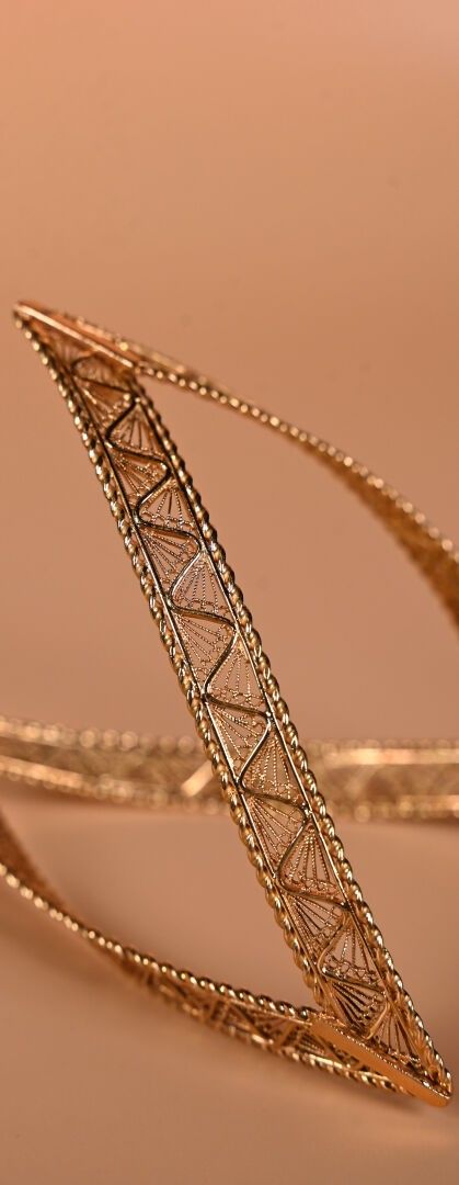 Two arm bracelets in 18k yellow gold. Central African filigree work. Total weight: 108.3 g. The lot will be hallmarked before the sale.