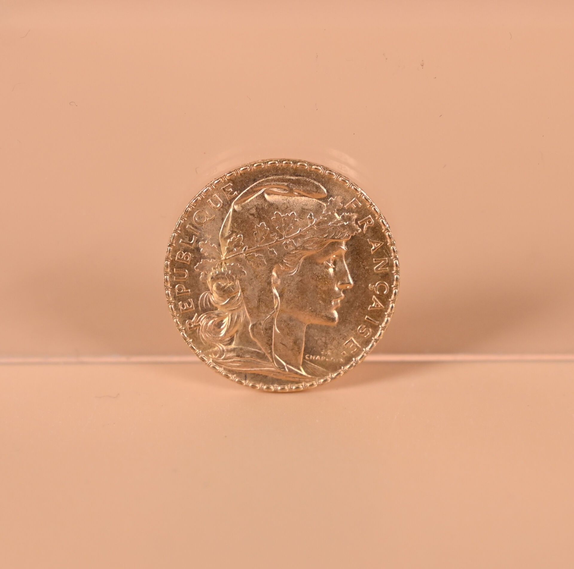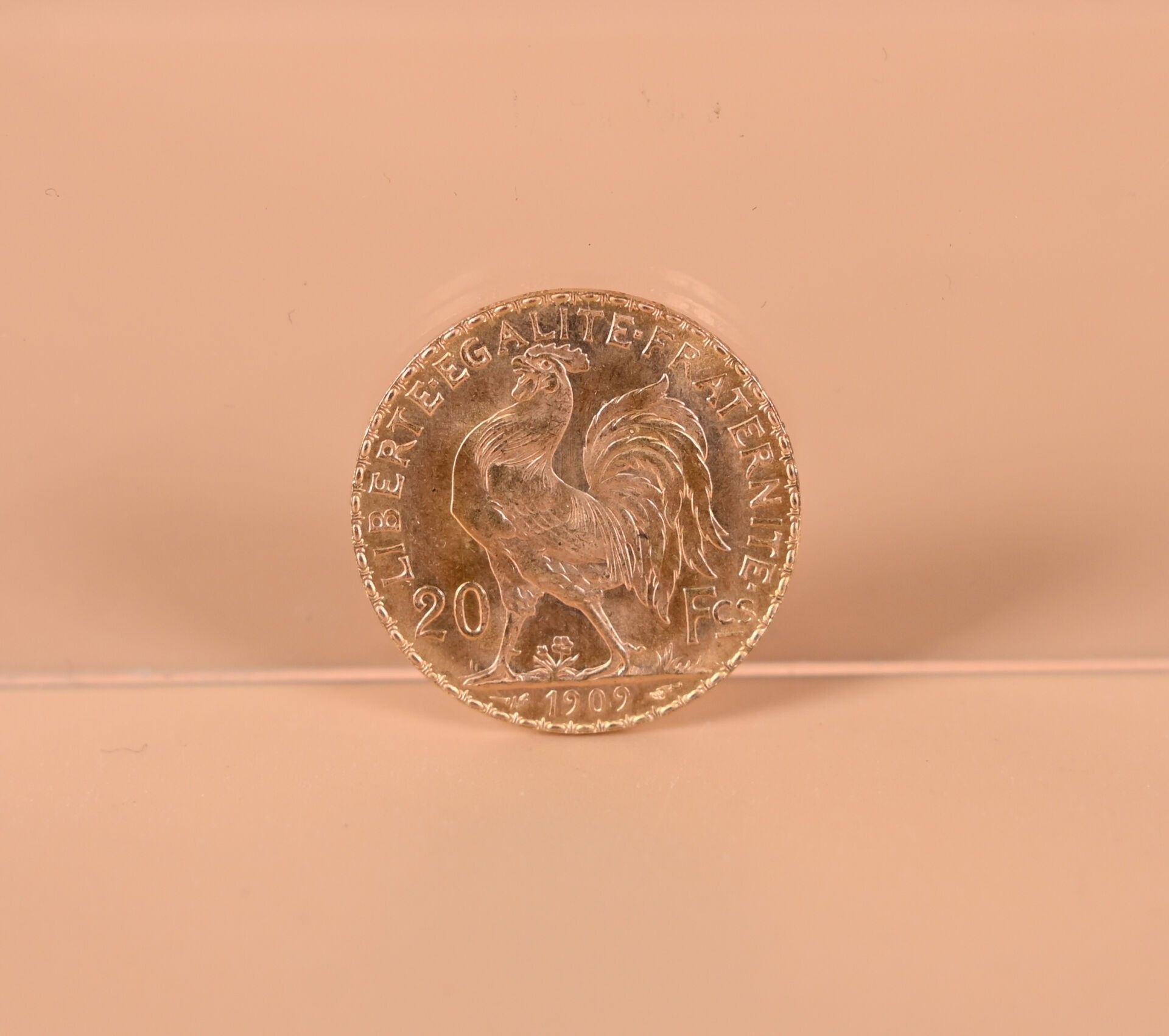 1 Coin of 20 Francs gold 1909 with rooster.