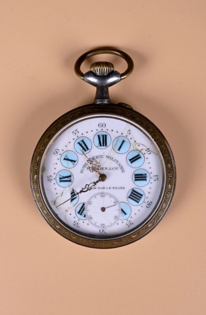 Two-tone metal regulator "MAGNIEN & COMPAGNIE" Military clocks (enamel chips). Starts.