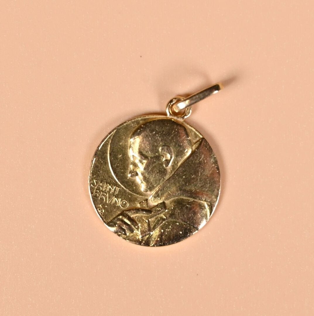 Saint Bruno" medal in 18K yellow gold 750/1000. Engraved. Weight: 3.79 g. The lot will be hallmarked before the sale.