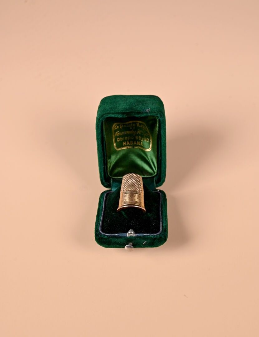 A thimble in 18K gold 750/1000. Weight : 4,6 g. In its case.
