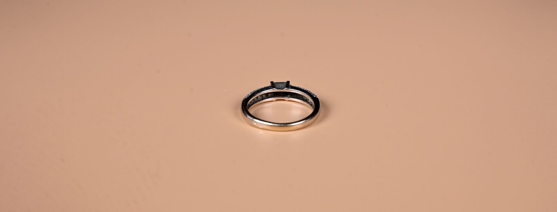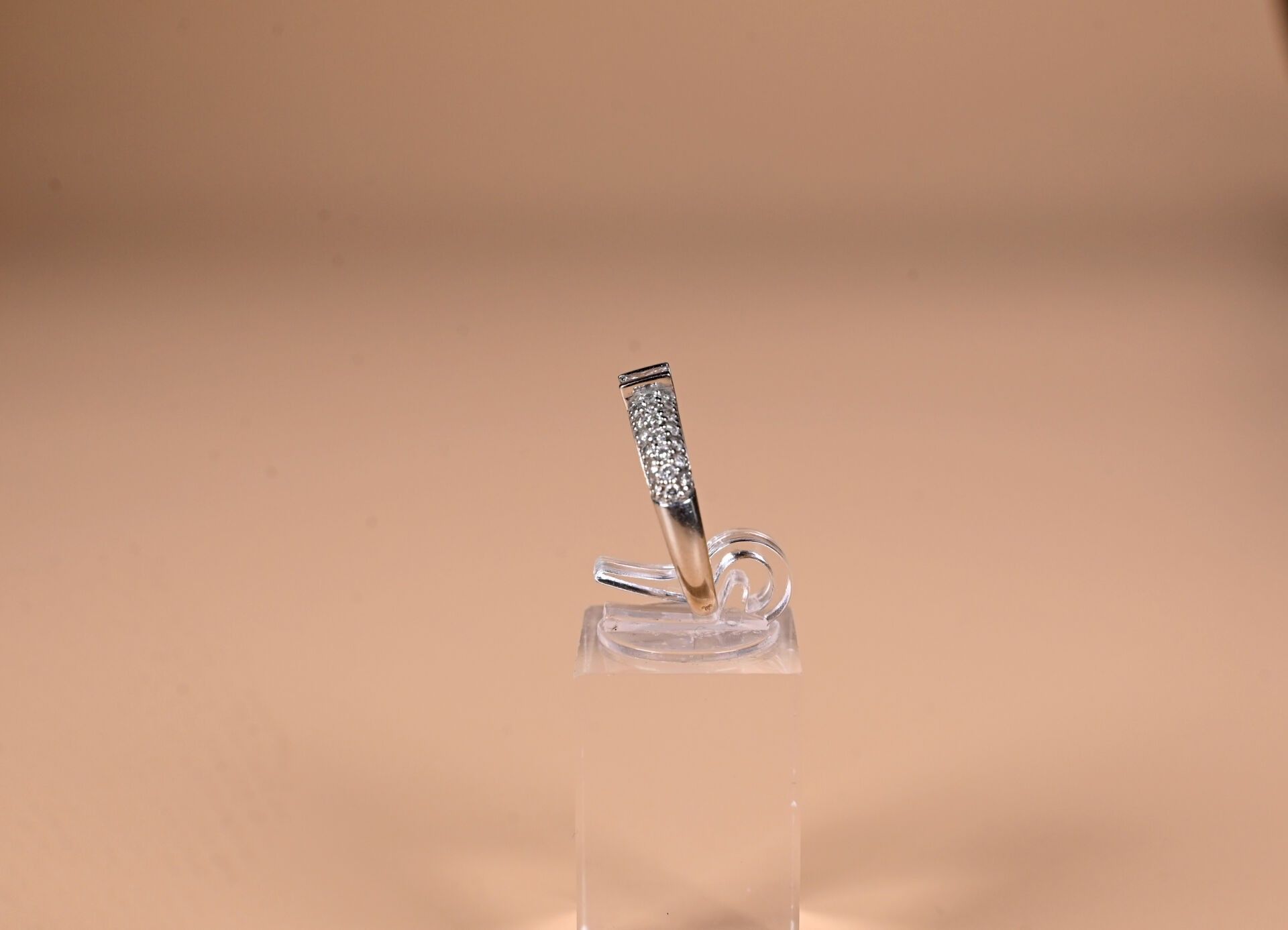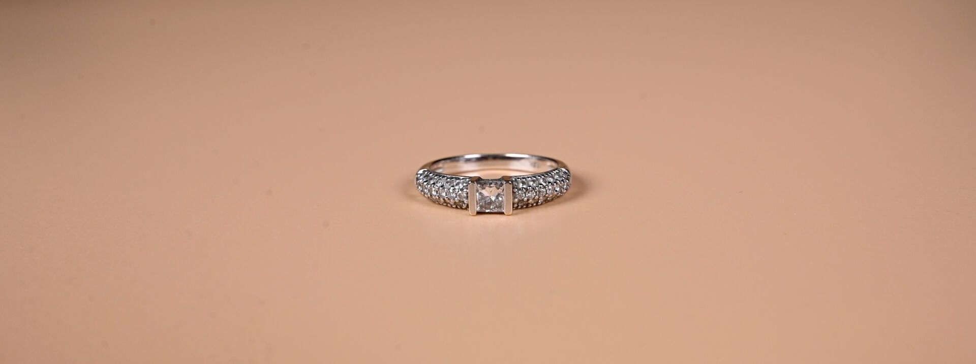 Ring in 18k 750 thousandths white gold centred on a princess cut diamond weighing approx. 0.25 ct with a pavé setting of diamonds. TDD 53. Gross weight: 3.3 g.