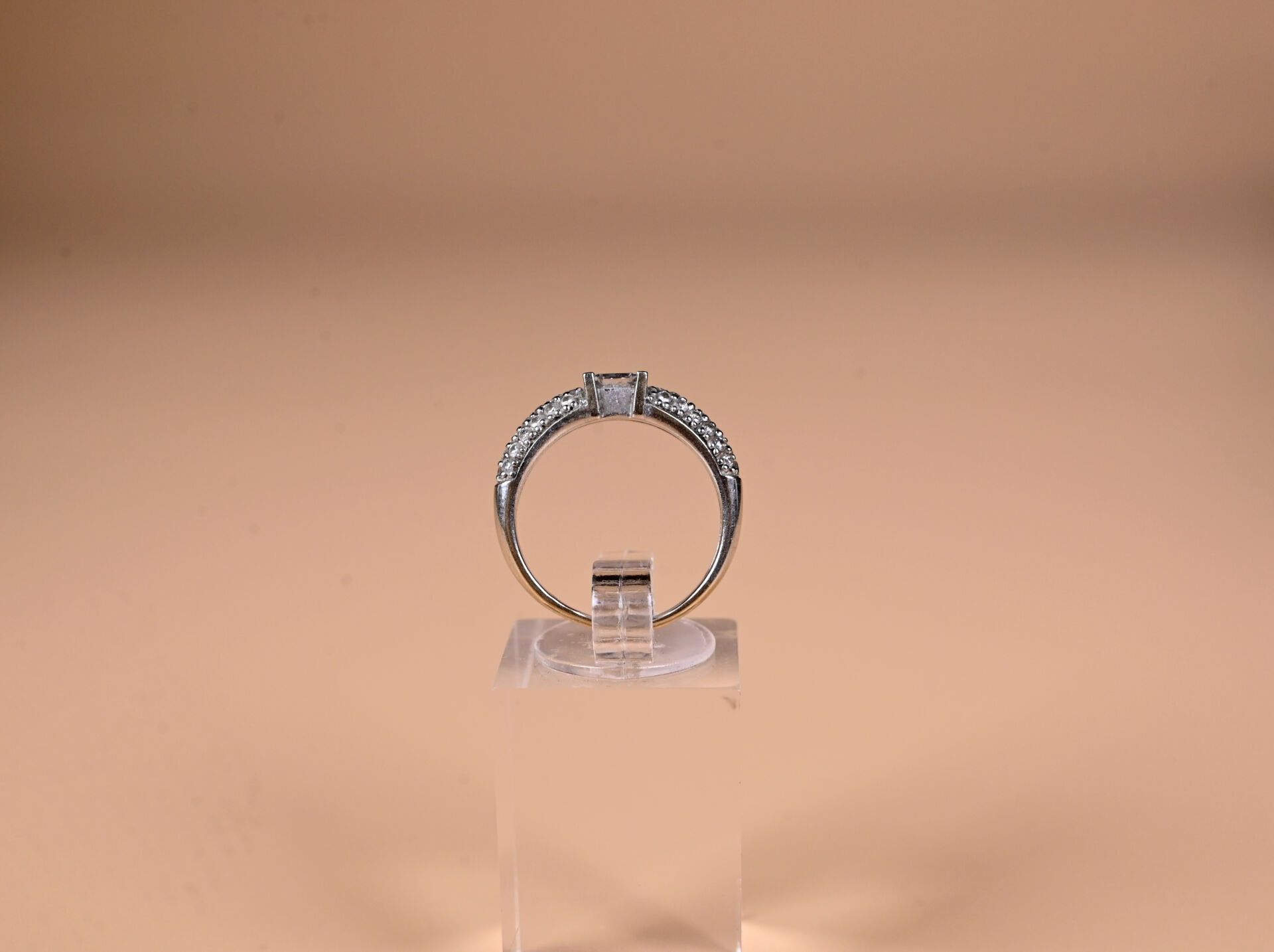 Ring in 18k 750 thousandths white gold centred on a princess…