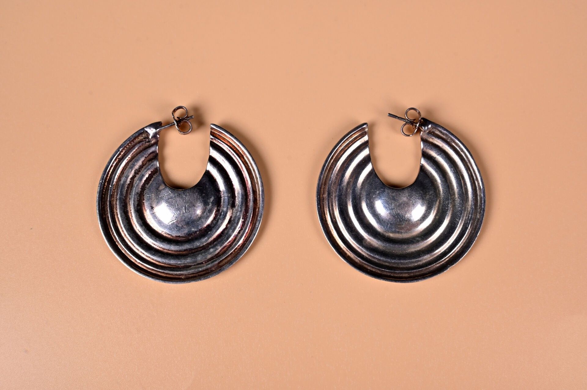 JEAN-PAUL GAULTHIER. Pair of designer hoop earrings in 925/1000 sterling silver. Signed. Diameter: 4 cm. Weight : 18,9 g.