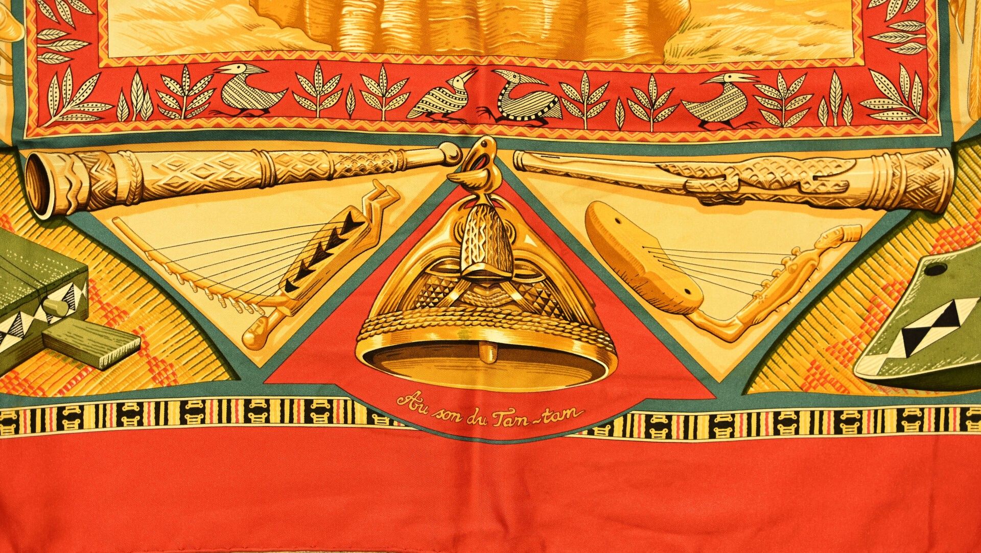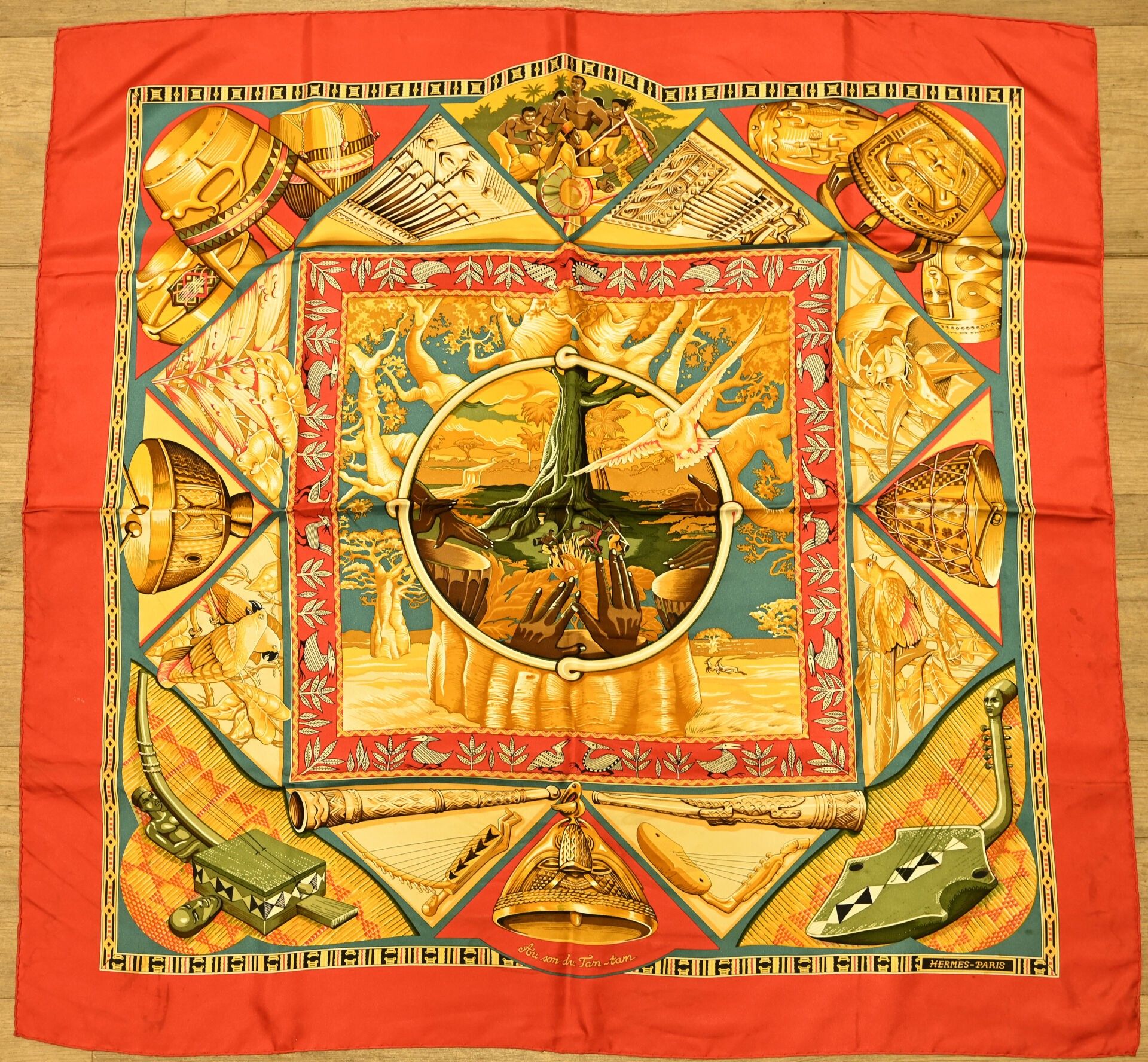 HERMES PARIS. Silk square model "Au son du tam-tam" after Bo…