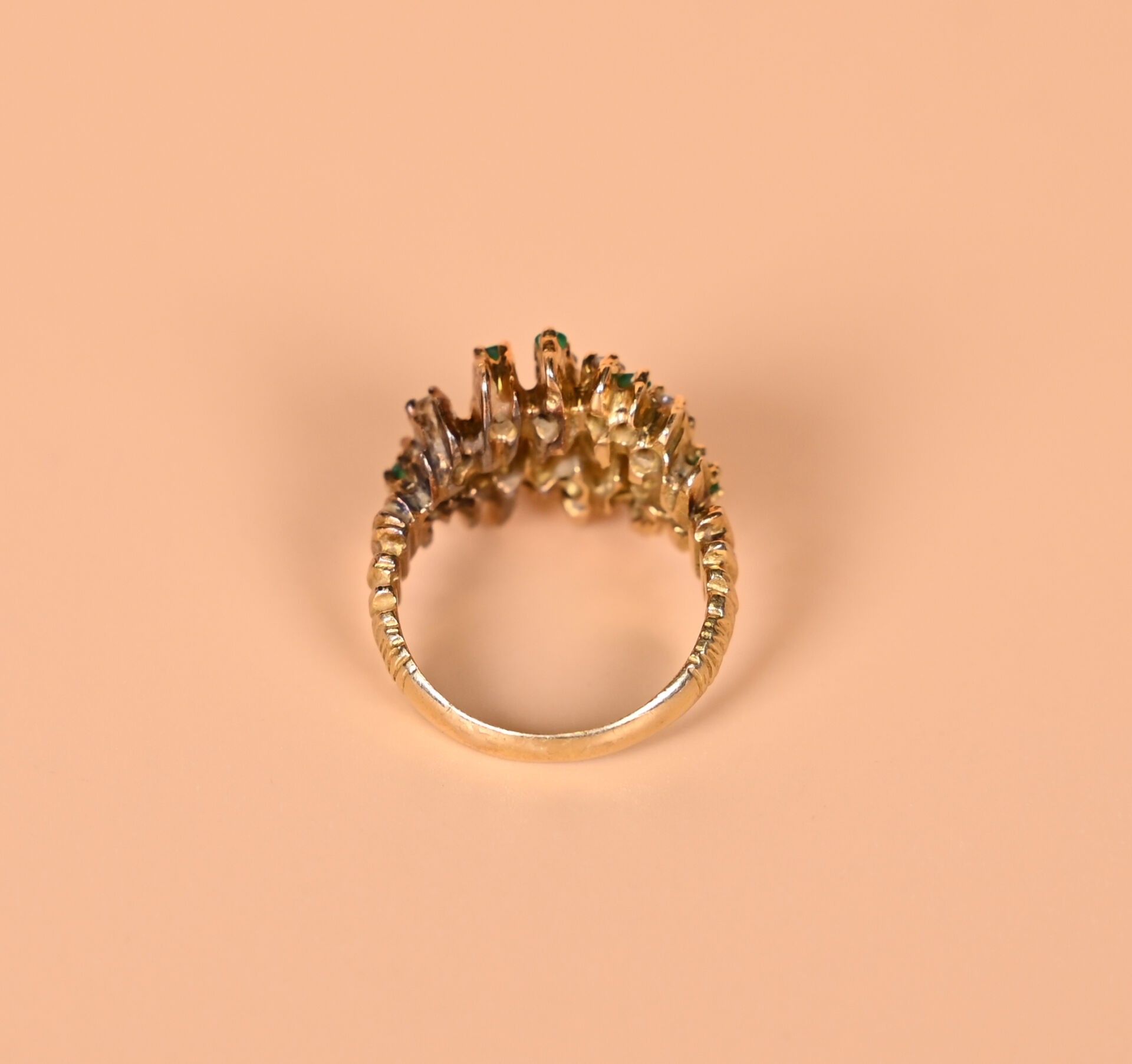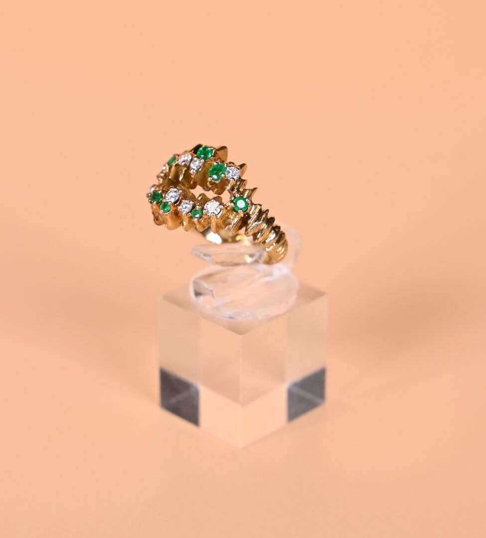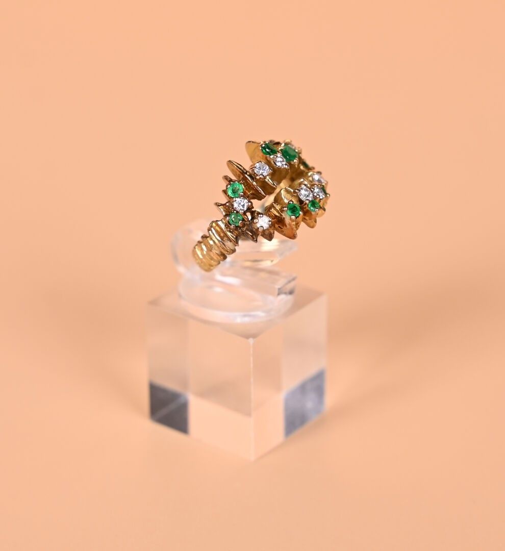 Ring from the 70s. Gold, emeralds and diamonds. Gross weight: 9.2 g. The lot will be hallmarked before the sale.