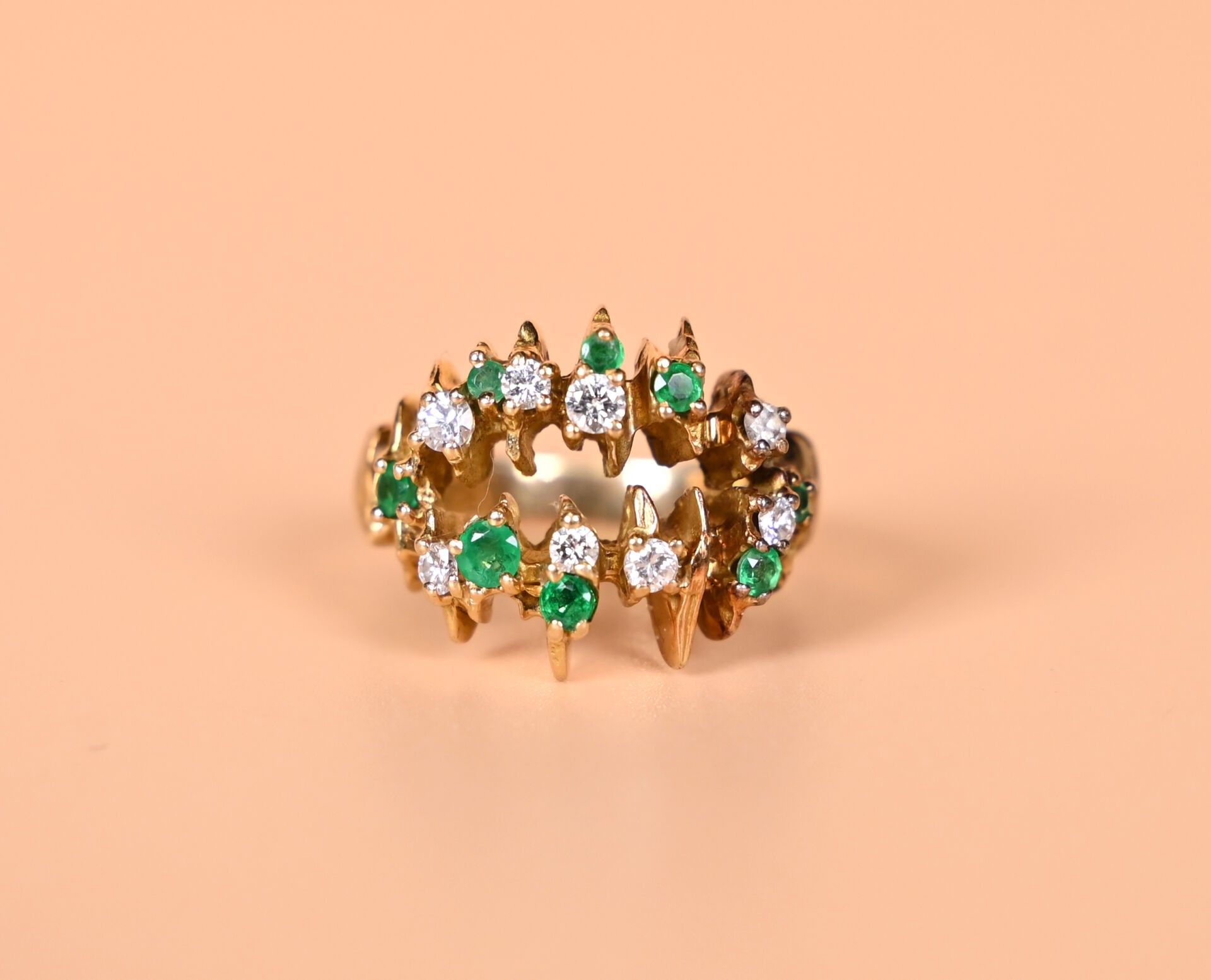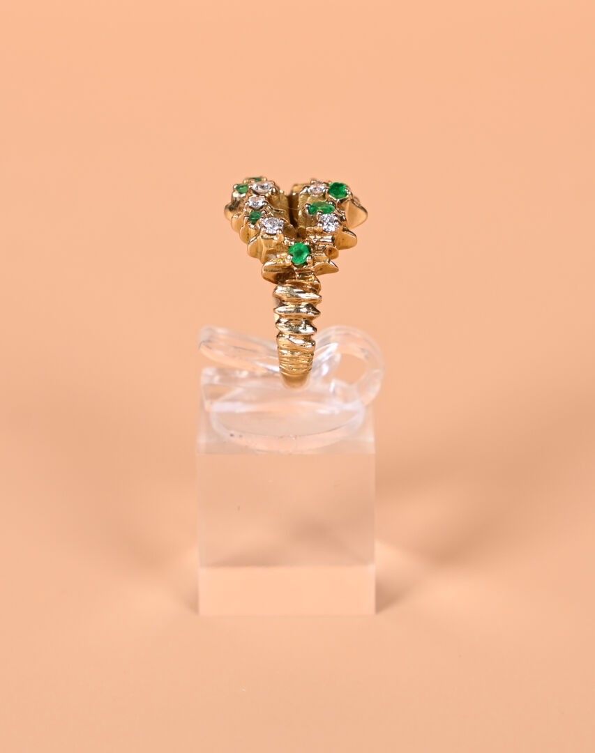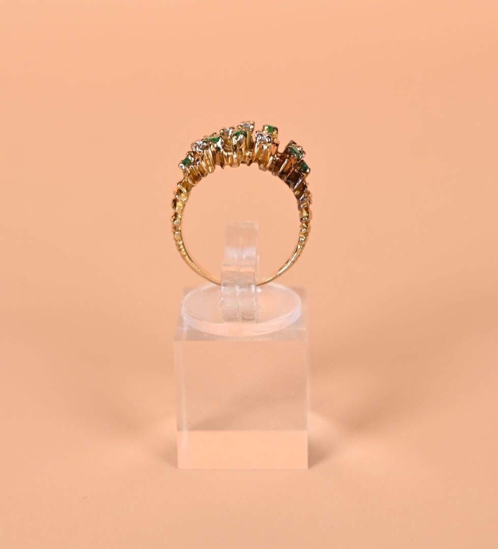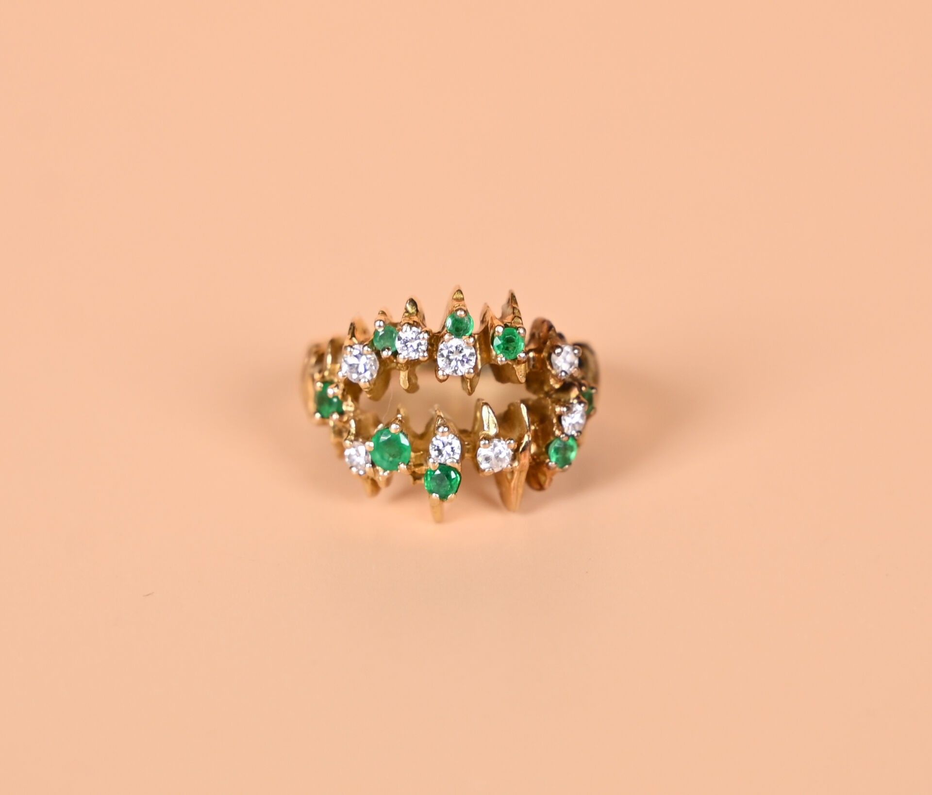 Ring from the 70s. Gold, emeralds and diamonds. Gross weight: 9.2 g. The lot will be hallmarked before the sale.