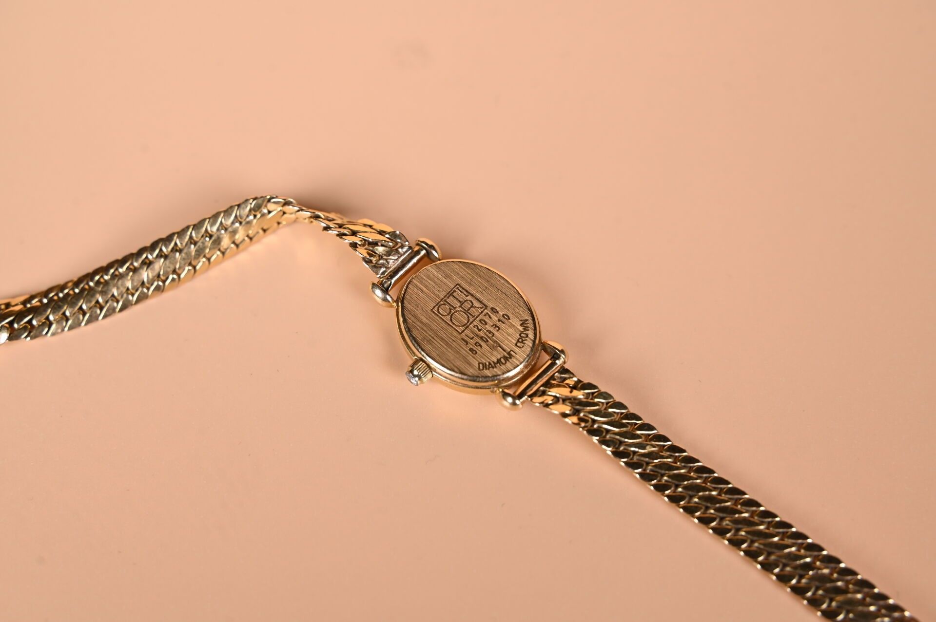 CITI GOLD. Small bracelet watch in 18K yellow gold 750/1000, bathtub case, gold bracelet, winding mechanism decorated with a small diamond (deformations to the bracelet). Dial signed Citi Or DC, case numbered JL2070 8903310. Gross weight : 16,45 g. Does not work.