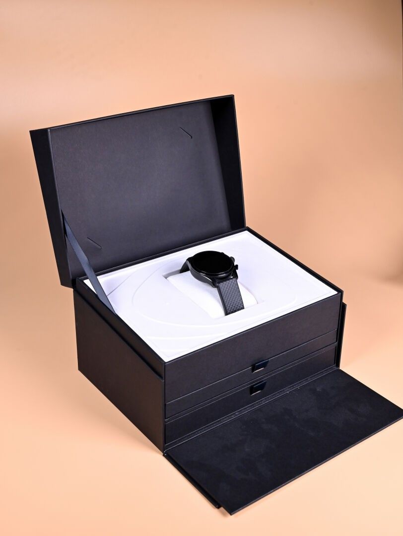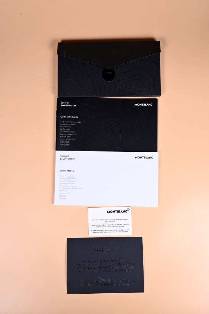 MONTBLANC. Connected watch model SUMMIT S3T22, blackened steel case, black rubber strap. With charger, box and documents. Starts.