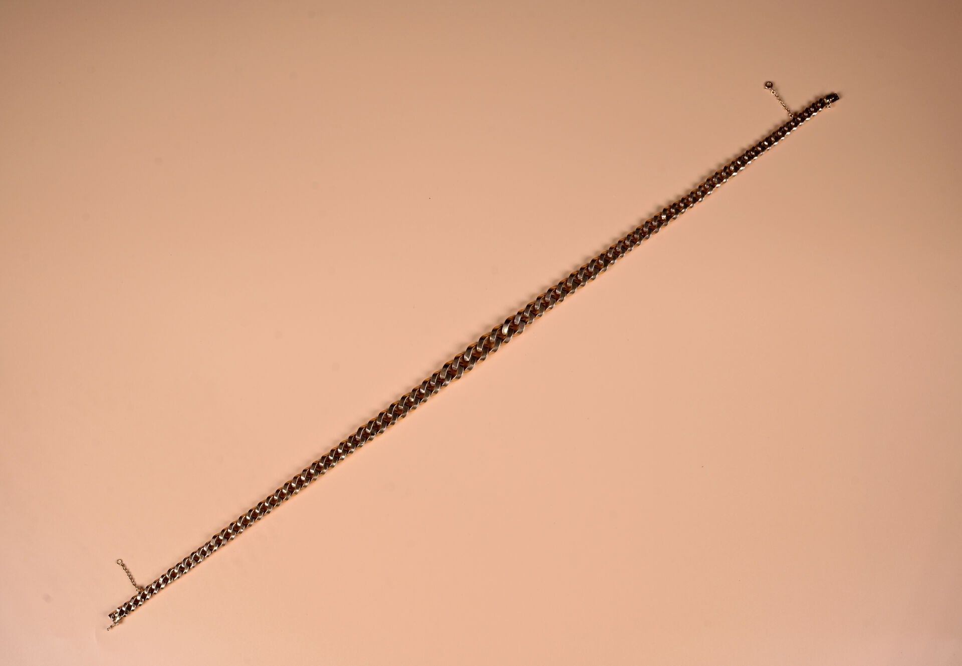 Necklace in 18K gold 750/1000e with hollow curb chain (small knocks). Length : 47.5 cm Weight. : 25,5 g.