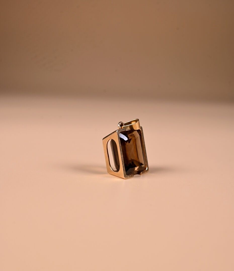 Pendant in 18K gold 750/1000th and smoky quartz.