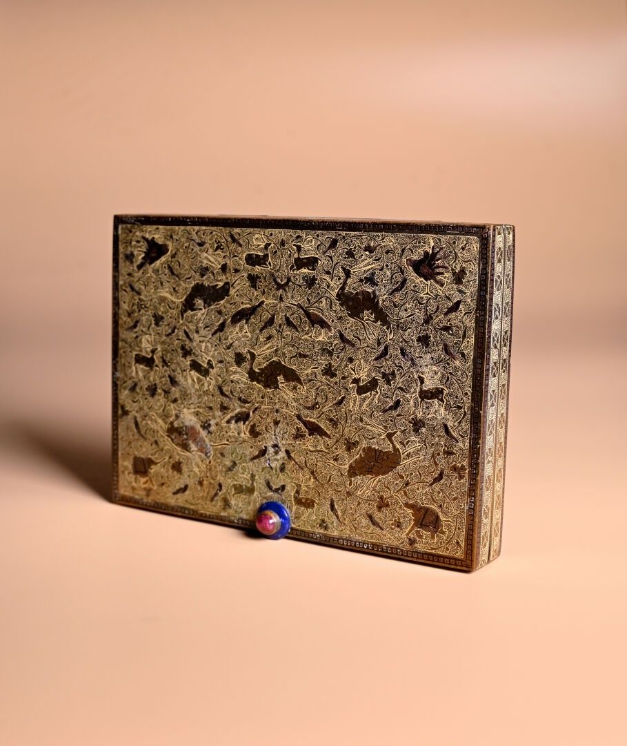 CARTIER. India Rajasthan. Copper minaudière with chased anim…