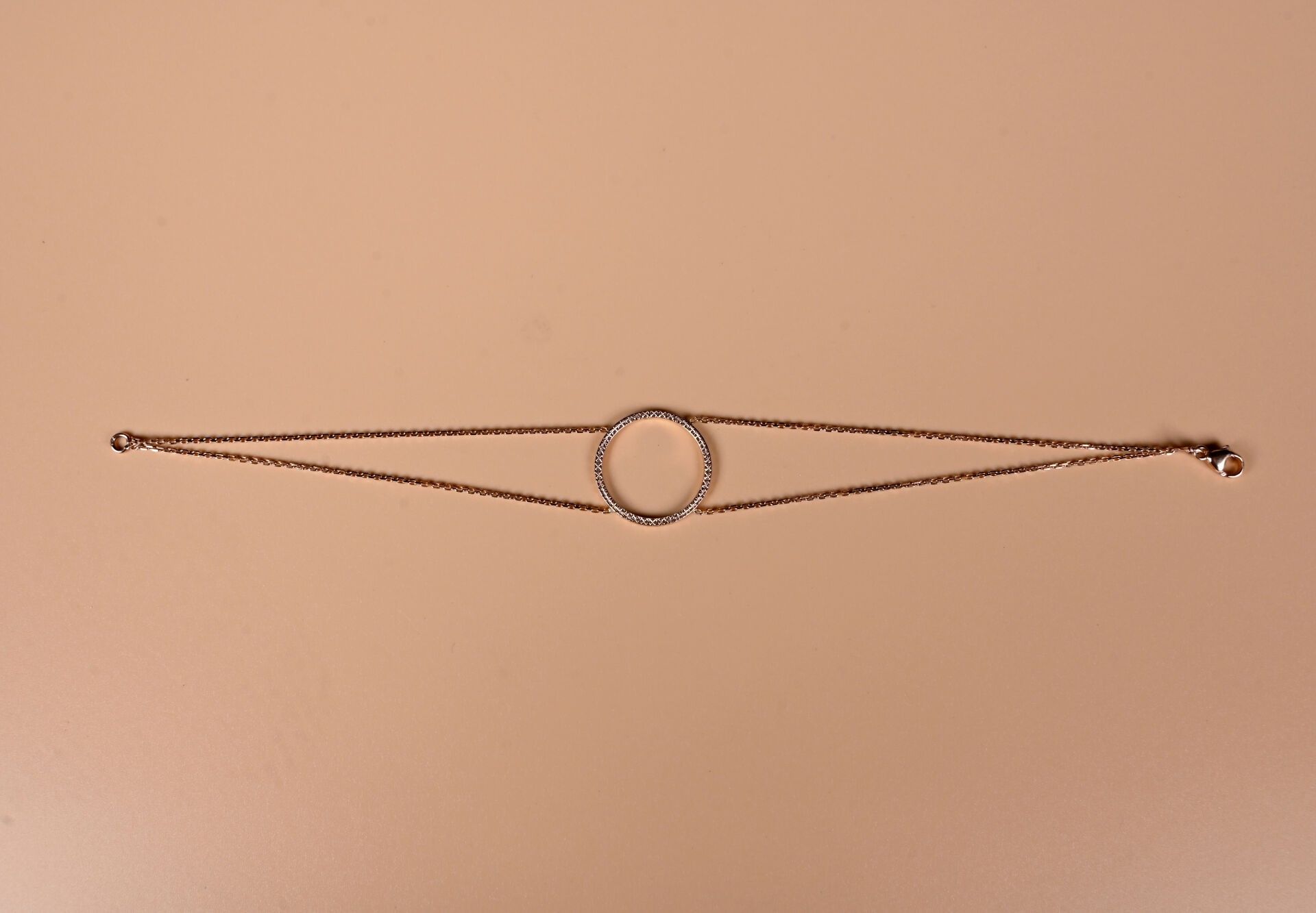 Double-row bracelet in 18K 750/1000 rose gold centred with a circle. Length: 19 cm. Weight: 3.5 g.