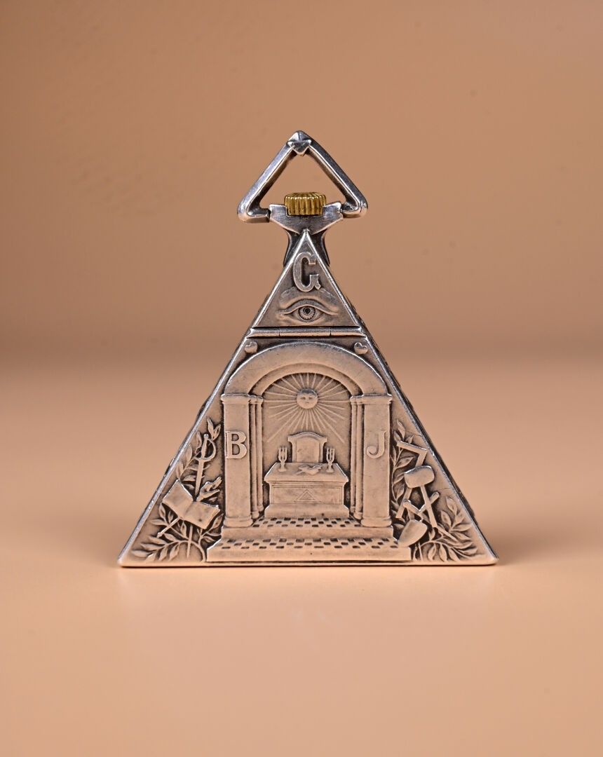 Premium SCHWAB-LOEILLET. Triangular masonic pocket watch in silver 9…