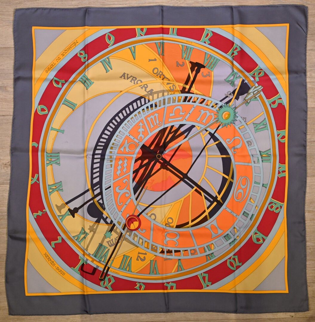 HERMES PARIS. Silk square model "Mécanique du temps" decorat…