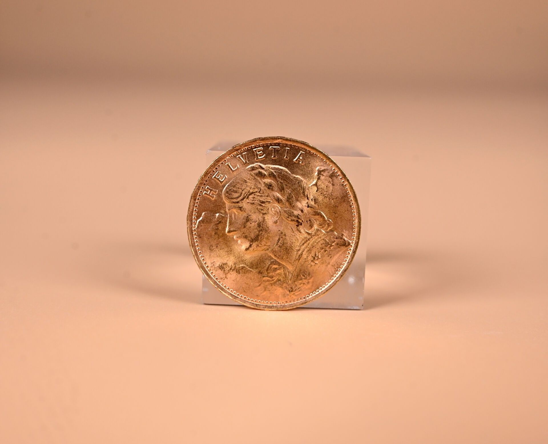 1 gold coin of 20 Swiss Francs 1935. Weight: 6.5 g.