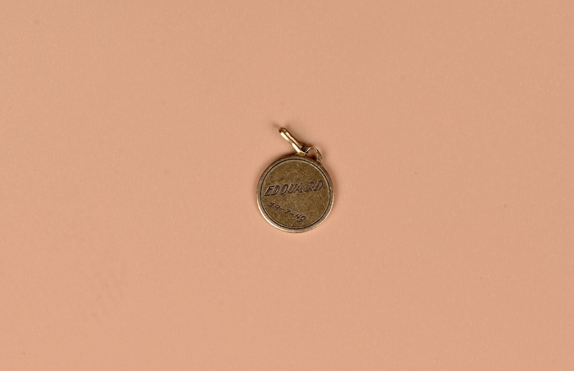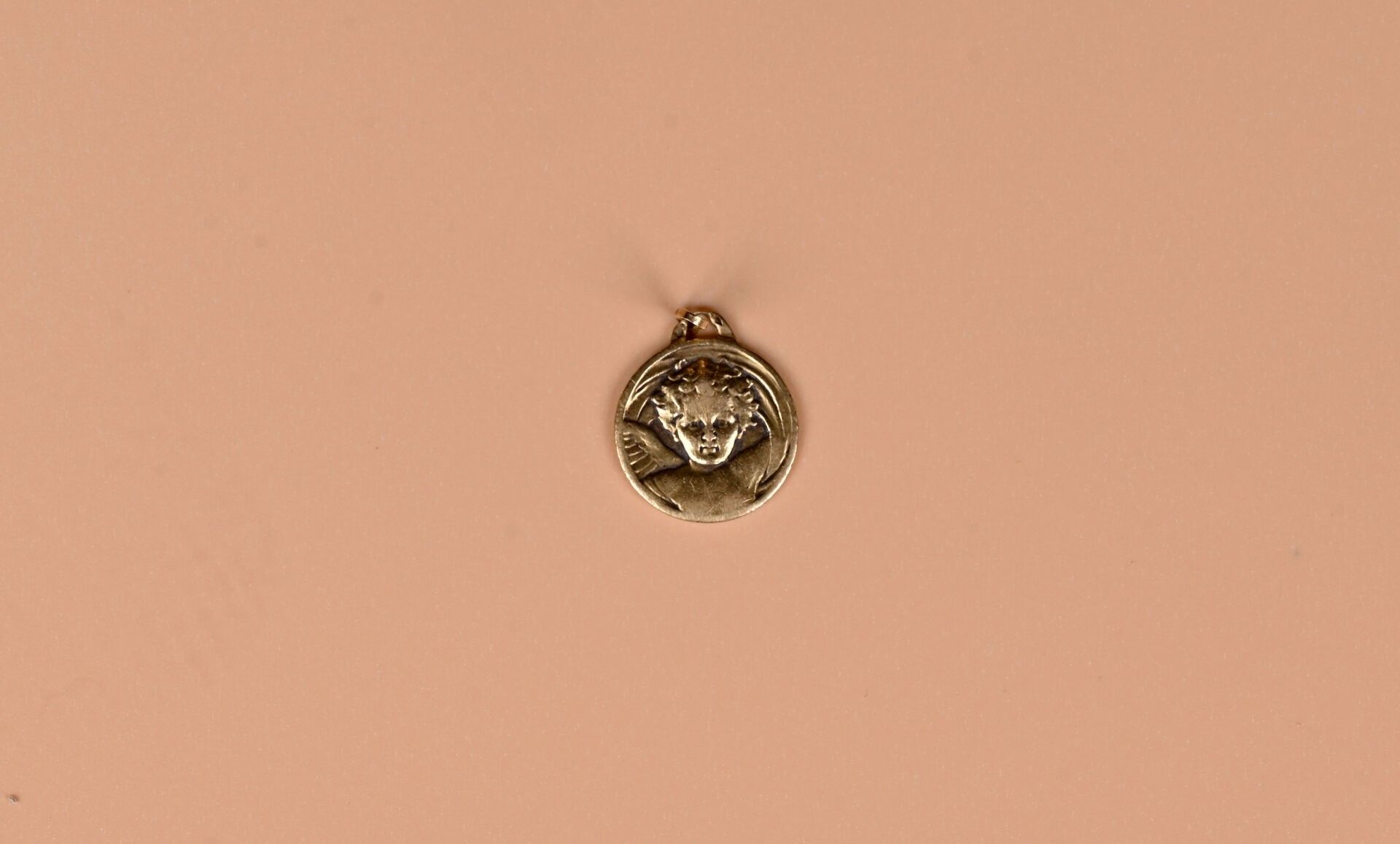 Medal in 18k gold depicting a putti. Beautiful engraving. Engraved. Diameter : 1,5 cm. Weight : 2,2 g.