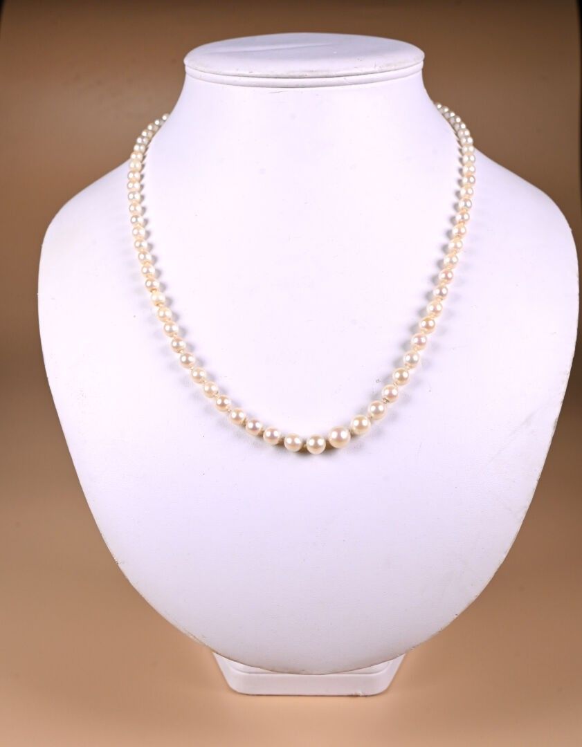 Fallen cultured pearl necklace with clasp and safety chain i…