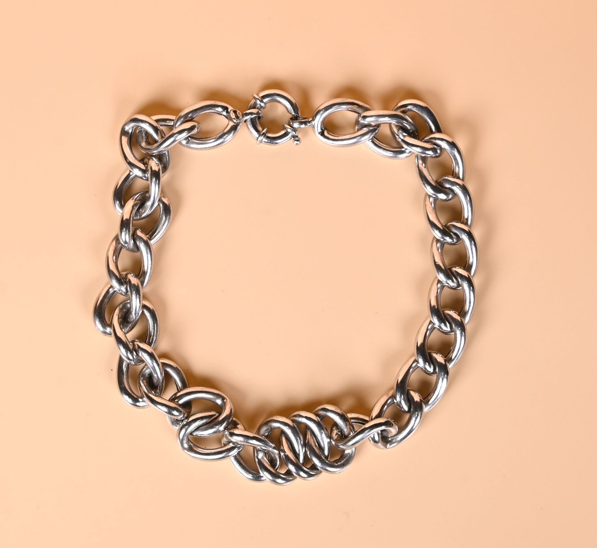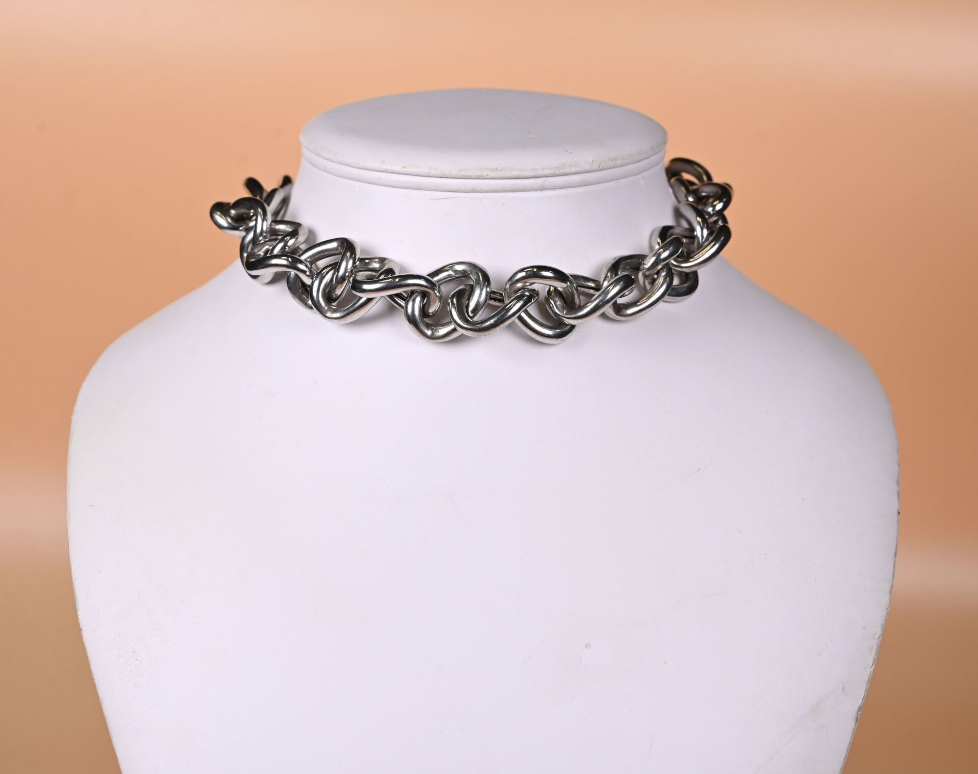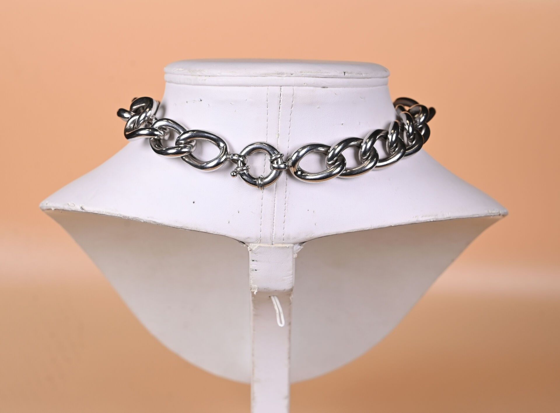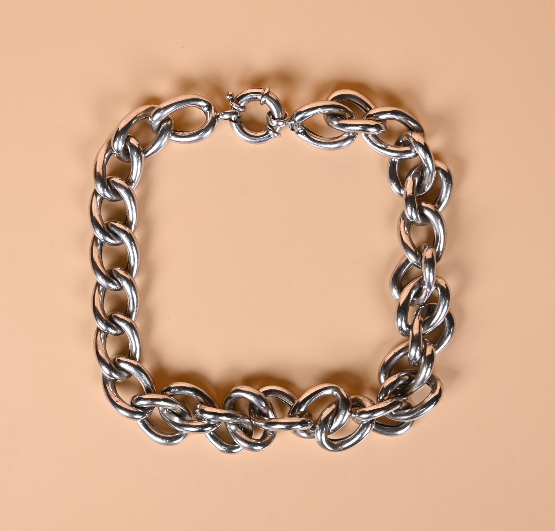 Hollow English link necklace in 925/1000 sterling silver. Length : 44 cm. Weight : 93,23 g.