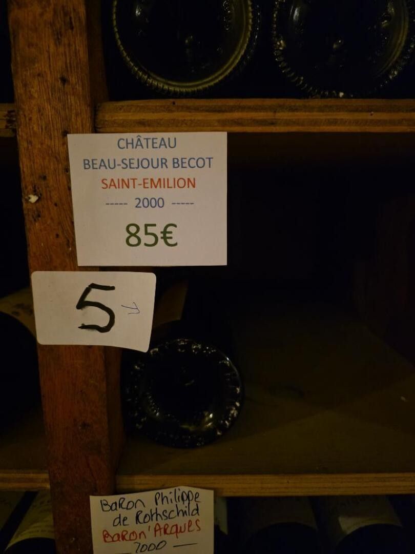 One bottle CH BEAU-SEJOUR BECOT SAINT EMILION 2000 , SALE PRICE (inc. VAT) PER UNIT: 85 €.