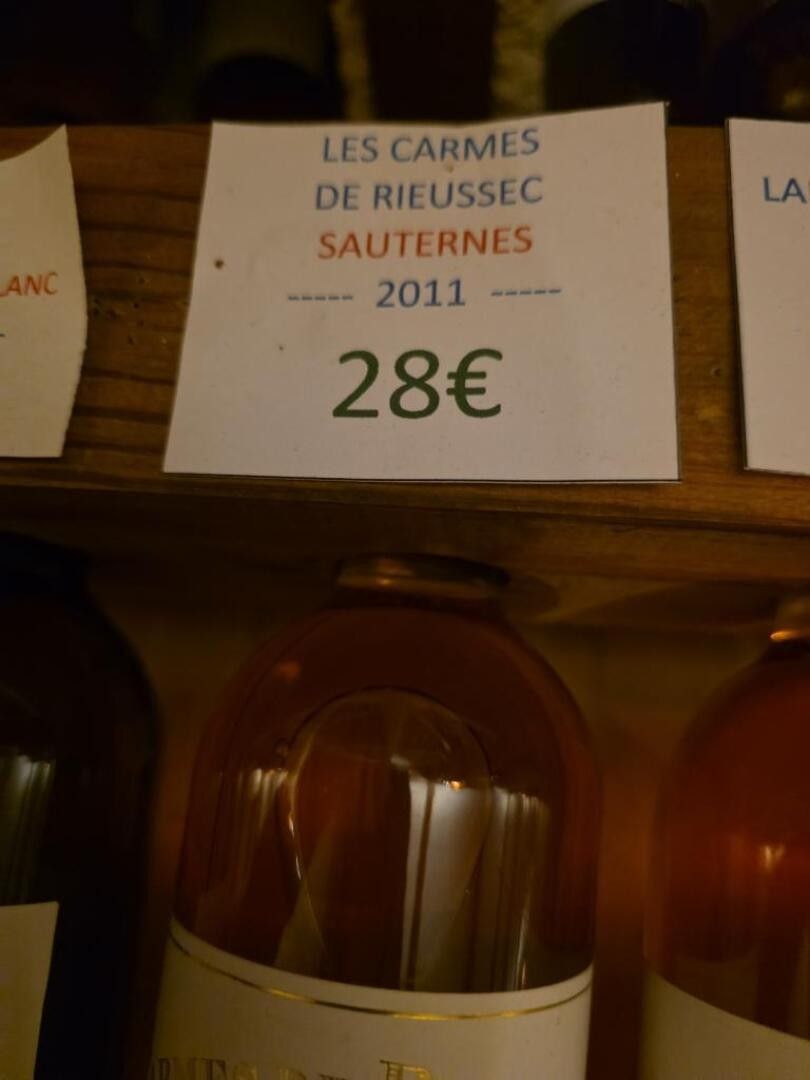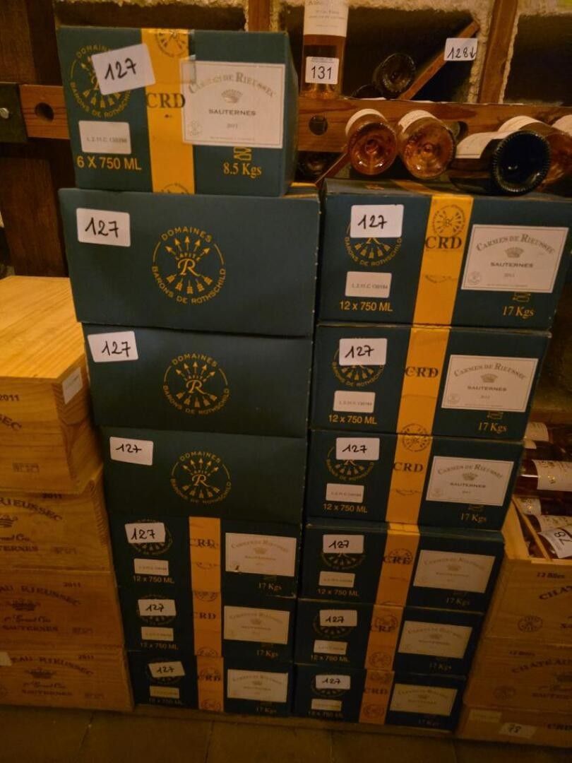 LES CARMES DE RIEUSSEC, SAUTERNES, 2011, 161 bottles including 9 boxes of 12 + 7 boxes of 6 + 11 bottles, SELLING PRICE (incl. VAT) PER UNIT: 28 e
