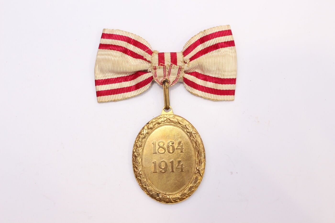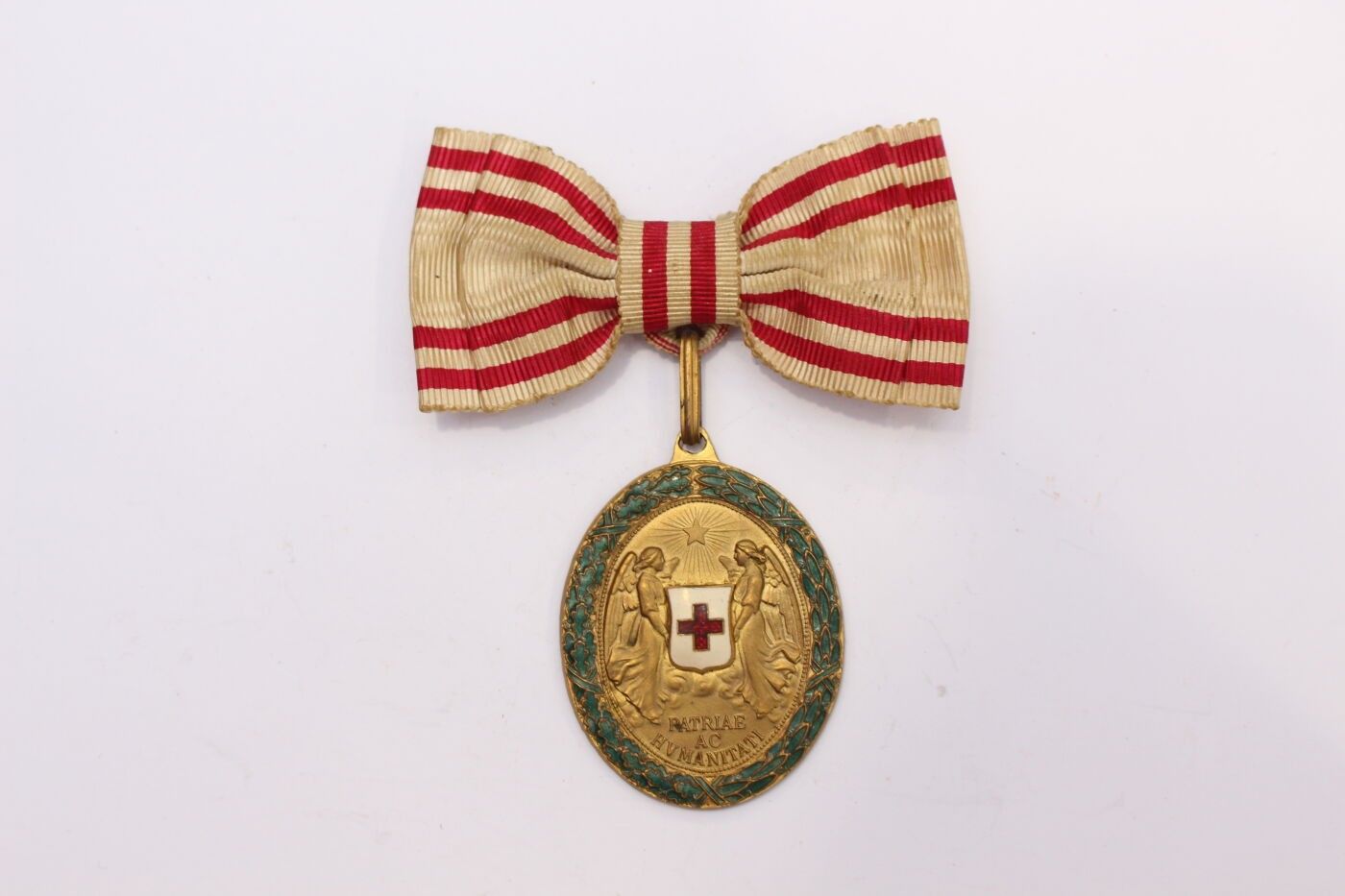 AUSTRIA-HUNGARY. Red Cross bronze merit badge with bronze war decoration, enamel and bow ribbon.