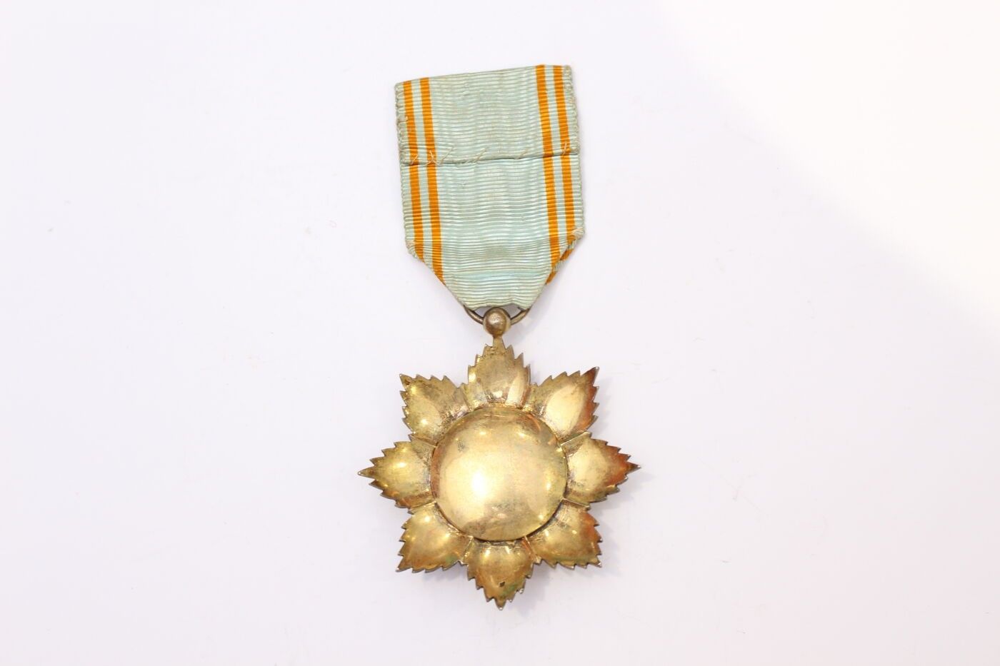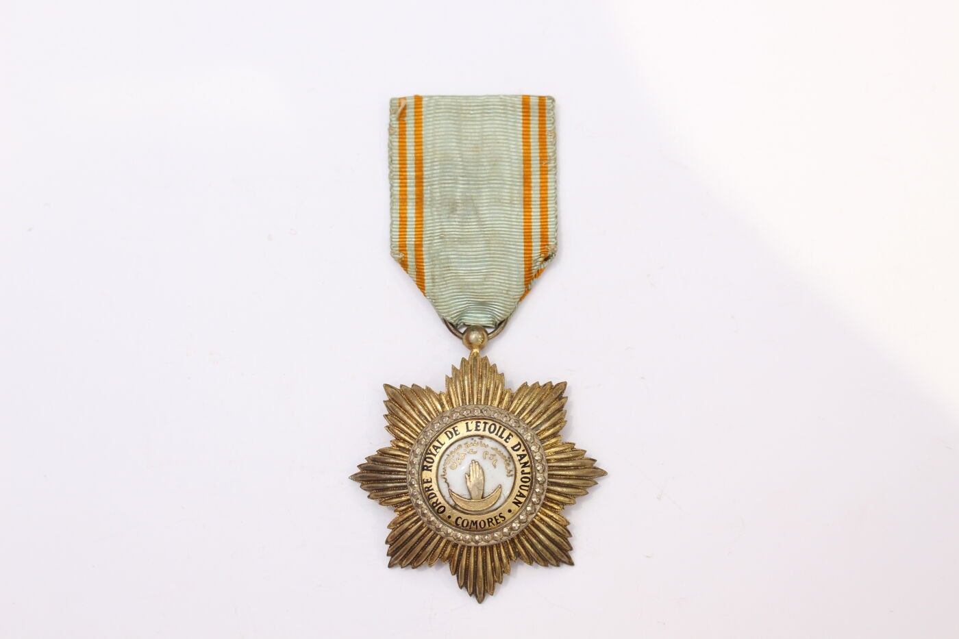 COMOROS. Royal Order of the Star of Anjouan. Knight's insignia in silver 800°/°°, enamel and ribbon. French goldsmith's hallmark. Gross weight: 40 g.