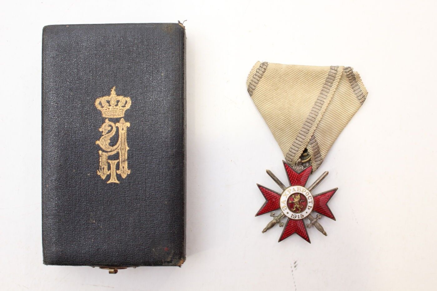 BULGARIA. Cross of Bravery. Insignia of 4th class, 2nd grade, in silver-plated metal, enamel and ribbon. In its original case with the royal numeral.