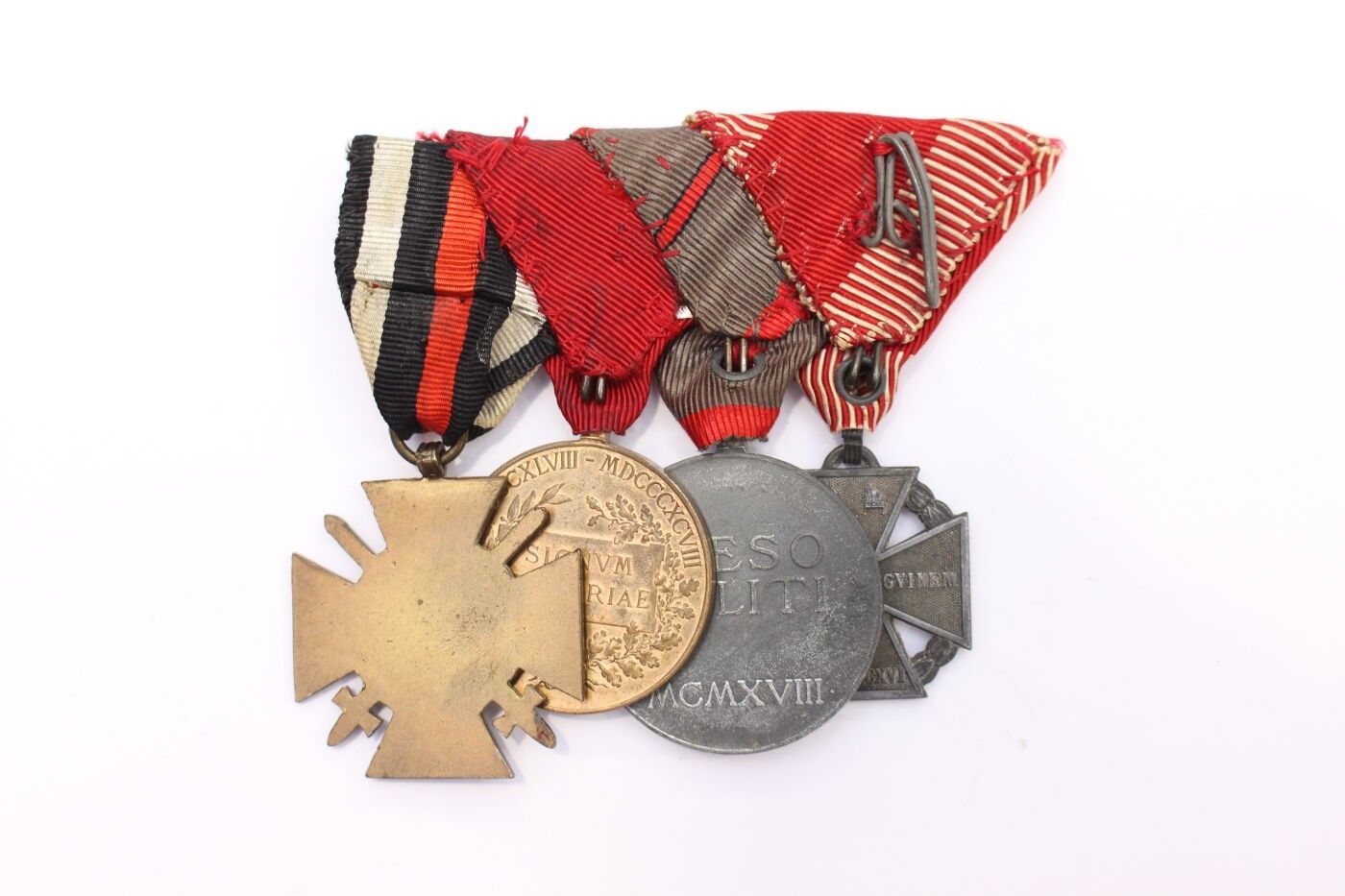 AUSTRIA-HUNGARY. Wearing four medals mounted on metal bars, including: Charles's silver cross for troops, medal for the wounded, 1898 commemorative medal, Hindenburg cross.