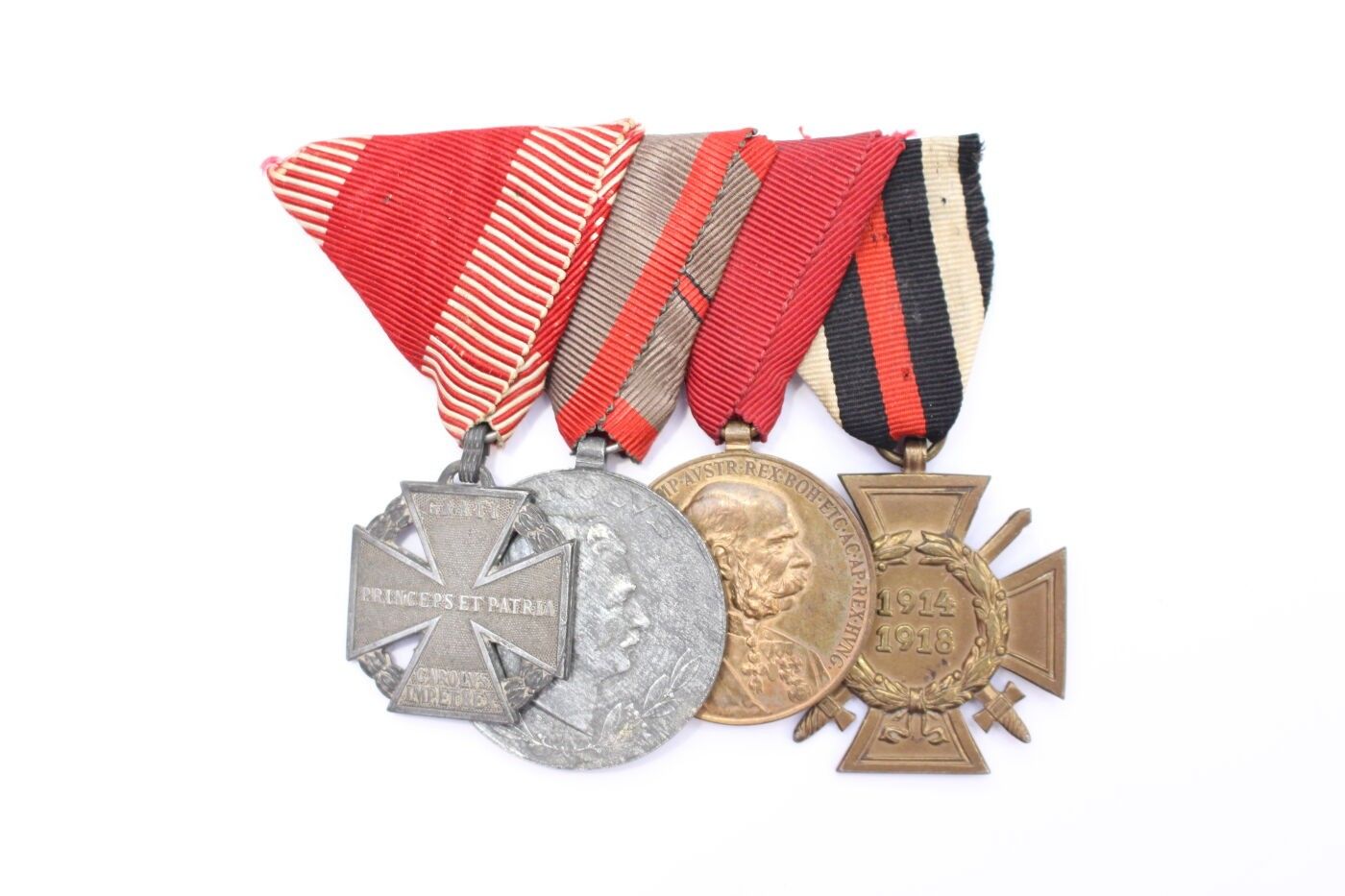 AUSTRIA-HUNGARY. Wearing four medals mounted on metal bars, …