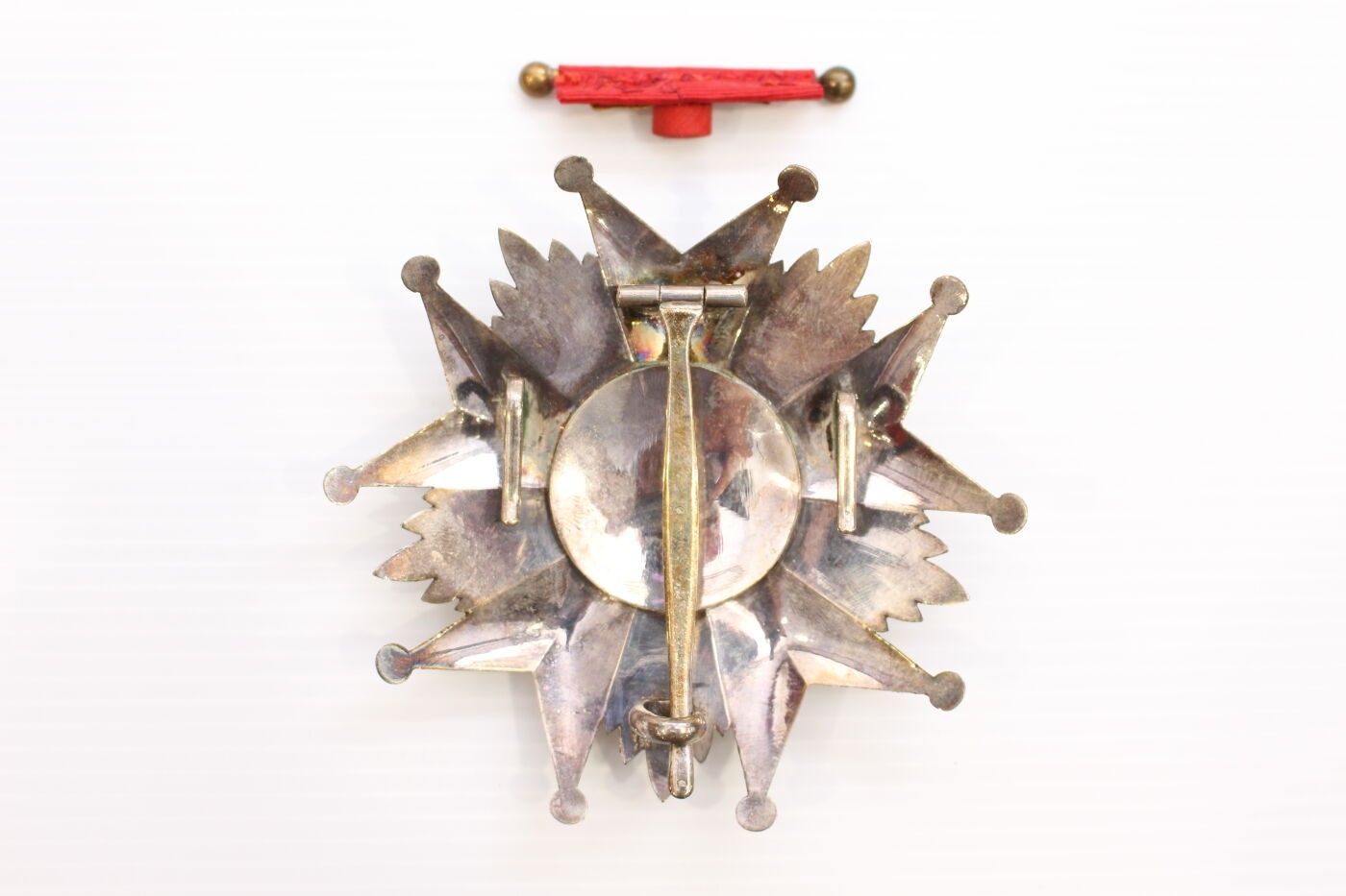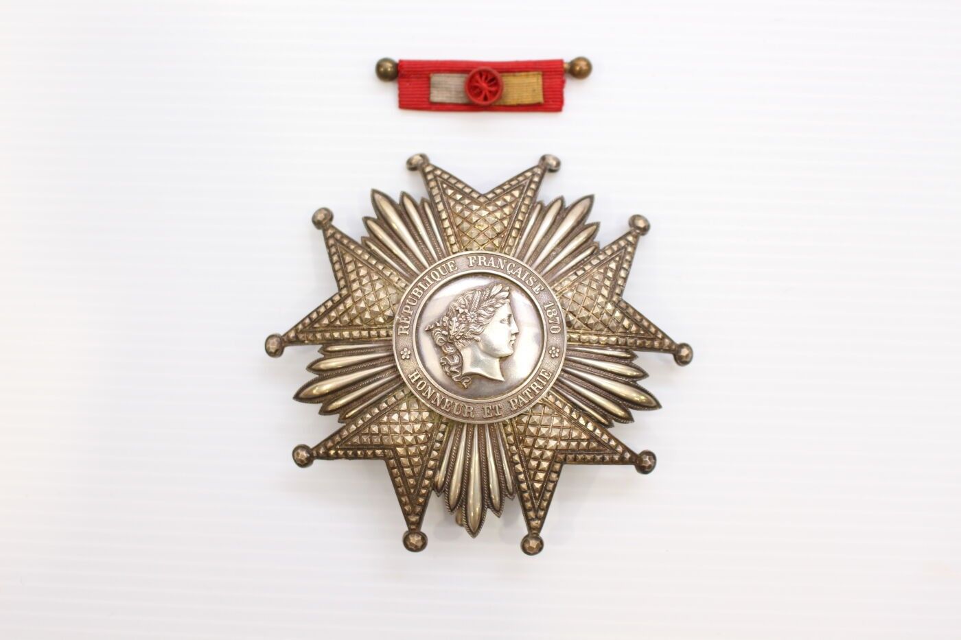 FRANCE. ORDER OF THE LEGION OF HONOUR. Grand officer's plaque in silver 800°/°° worked in diamond points. Attached by a toggle pin and two side hooks. Goldsmith's hallmark. Third Republic period. Weight: 109.5 g. A buttonhole ring is attached.