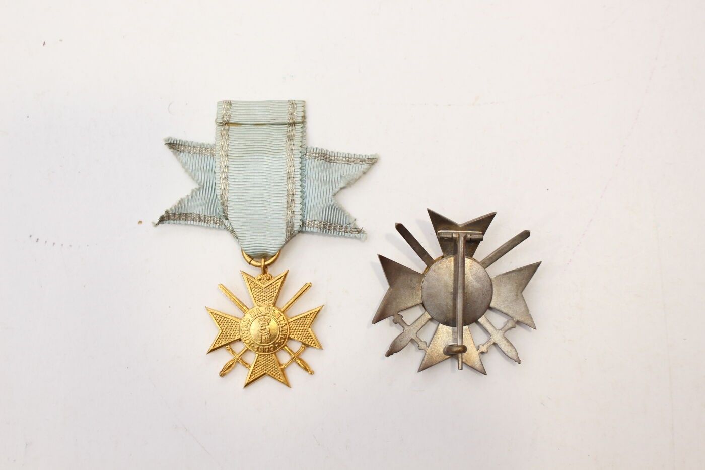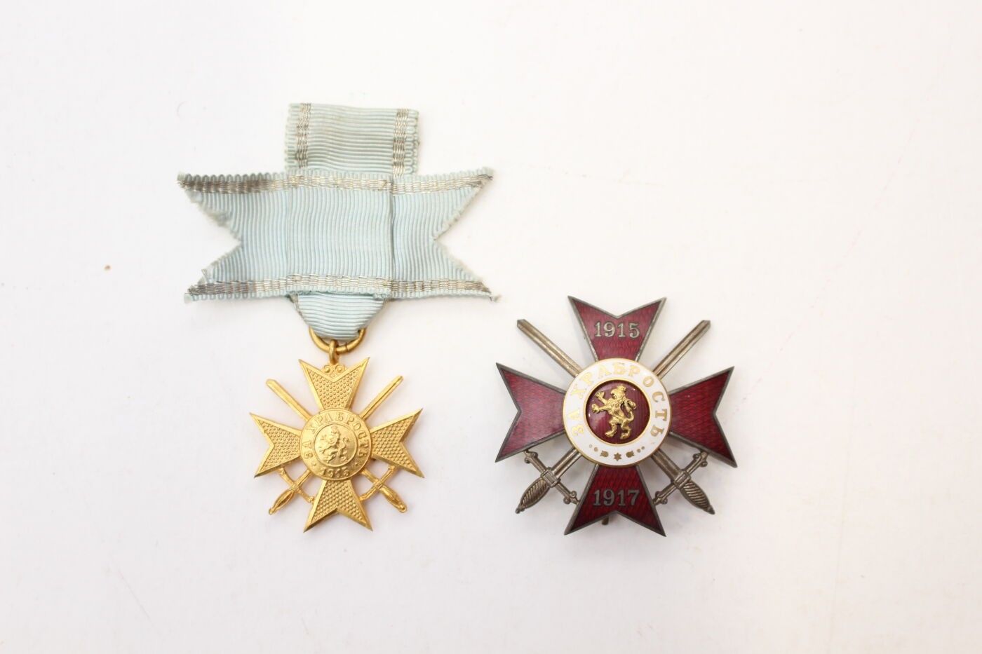 BULGARIA. Set of two items including: cross of bravery. Insignia of 4th class, 1st grade, type 1915/1917 in silvered bronze and enamel; medal of bravery of 1st class in gilt metal and ribbon with bow.