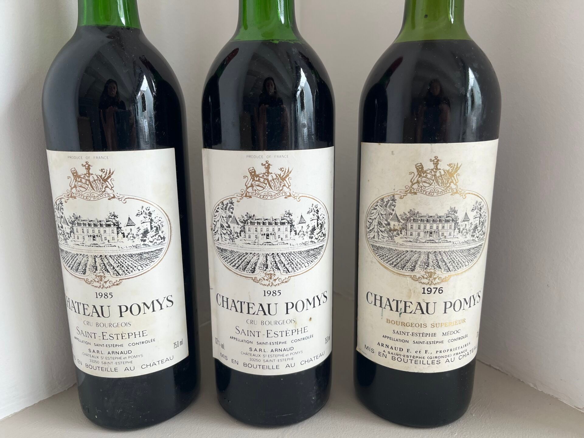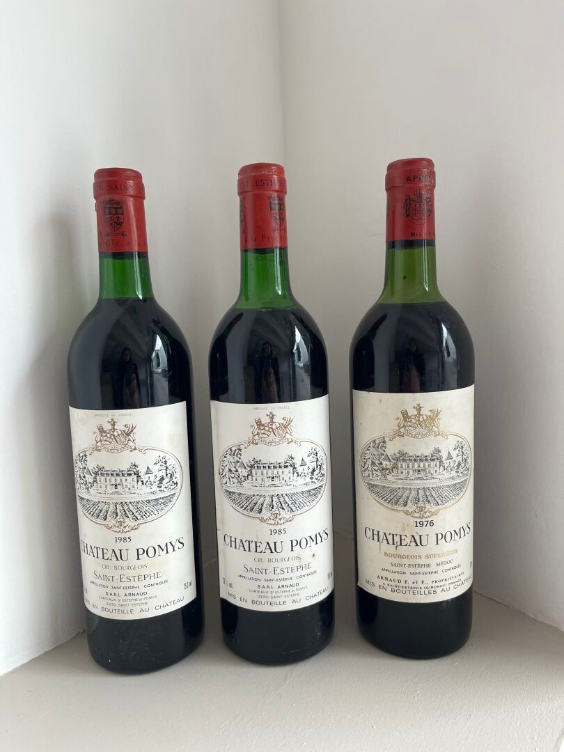 [Bordeaux]. 3 bottles of Château Pomys, Saint-Estèphe, (x2) 1985 and 1976, ARNAUD. Stained labels. As is.