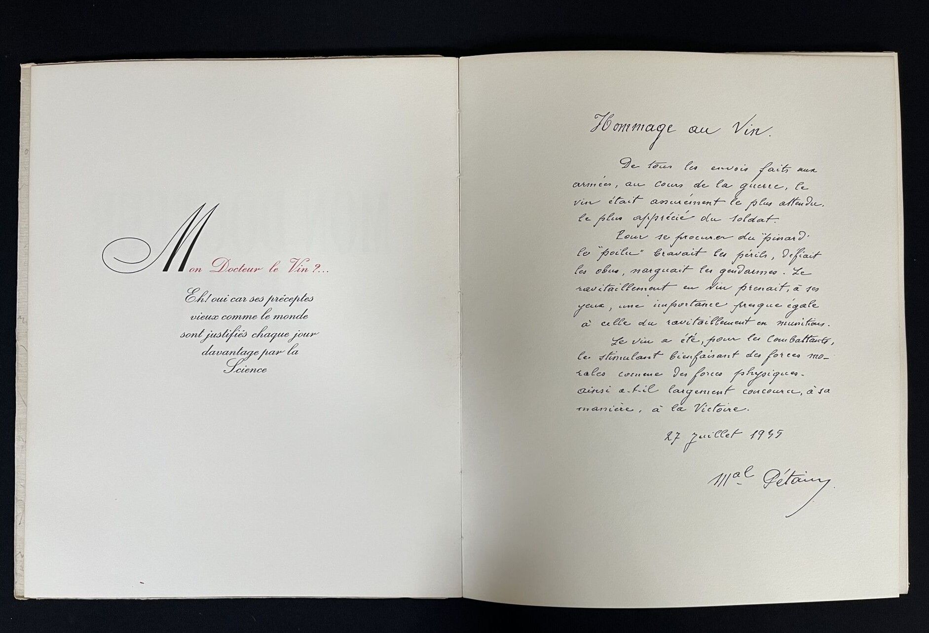 - Mon docteur le vin, watercolours by Raoul DUFY and text by Gaston DERYS. Paris, Draeger frères, 1936. Small folio, paperback, illustrated with 19 watercolour reproductions by Dufy and a tribute by Marshal Pétain (July 1935) in the preface.