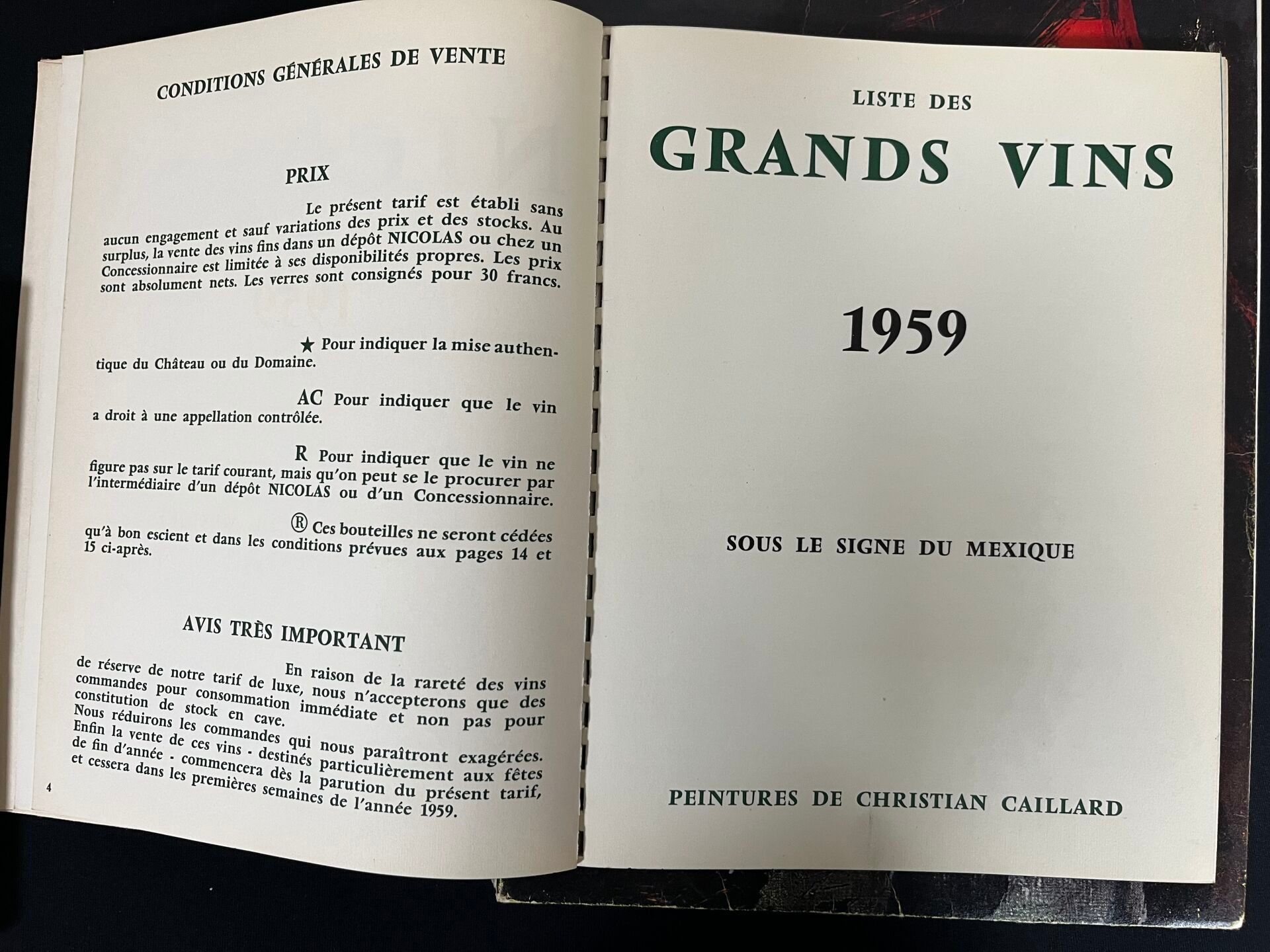 - Établissements Nicolas. List of great wines, 1959, under the sign of Mexico. Paintings by Christian CAILLARD.