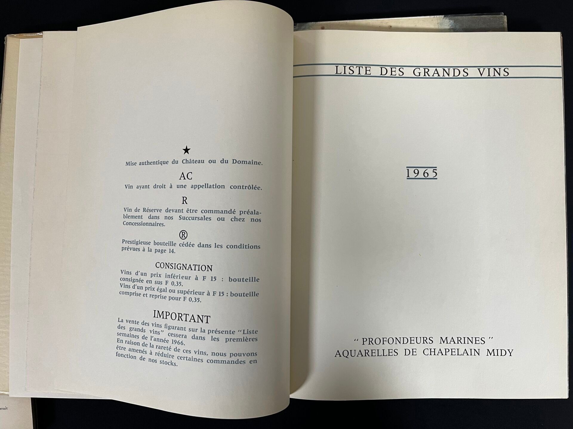 - Nicolas. List of great wines, 1965, "Profondeur marines", watercolours by CHAPELAIN MIDY.