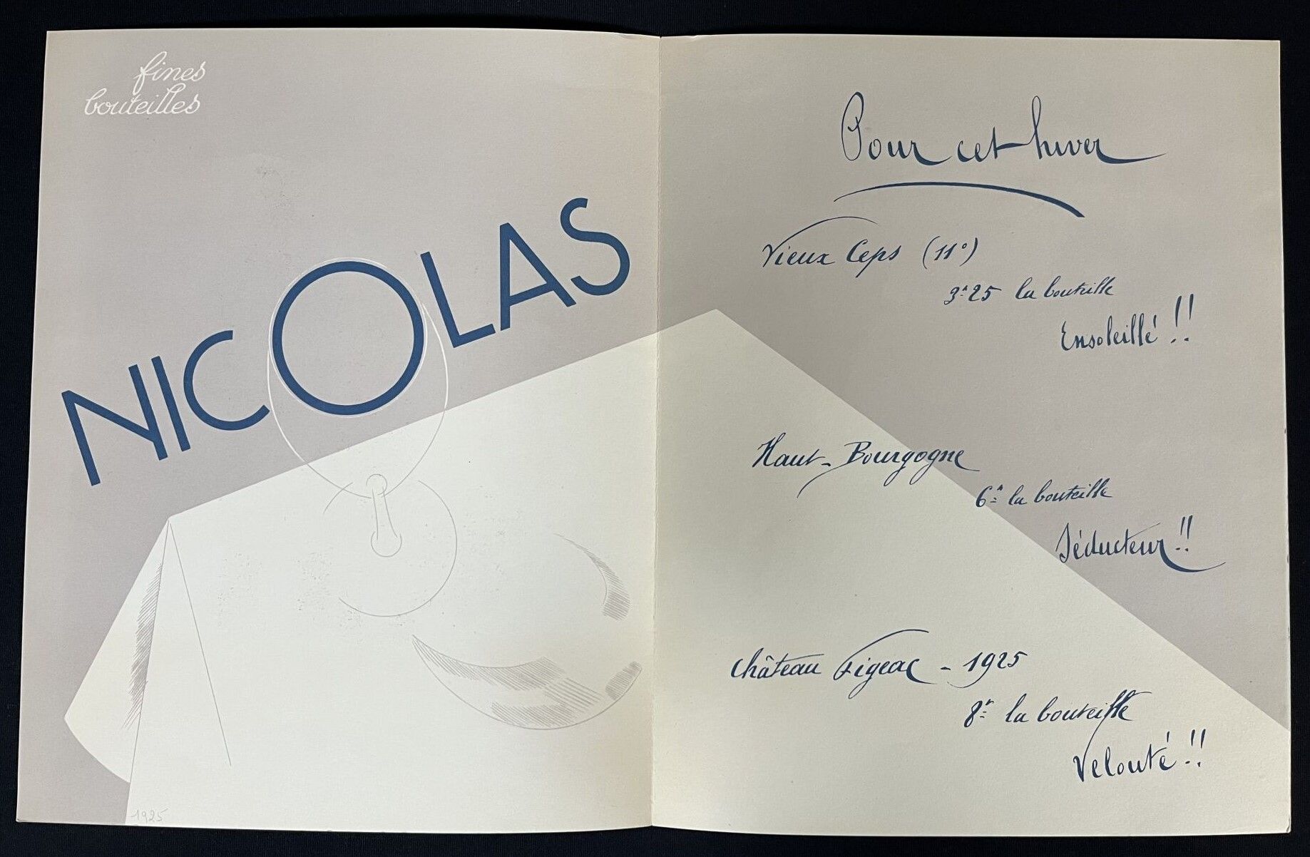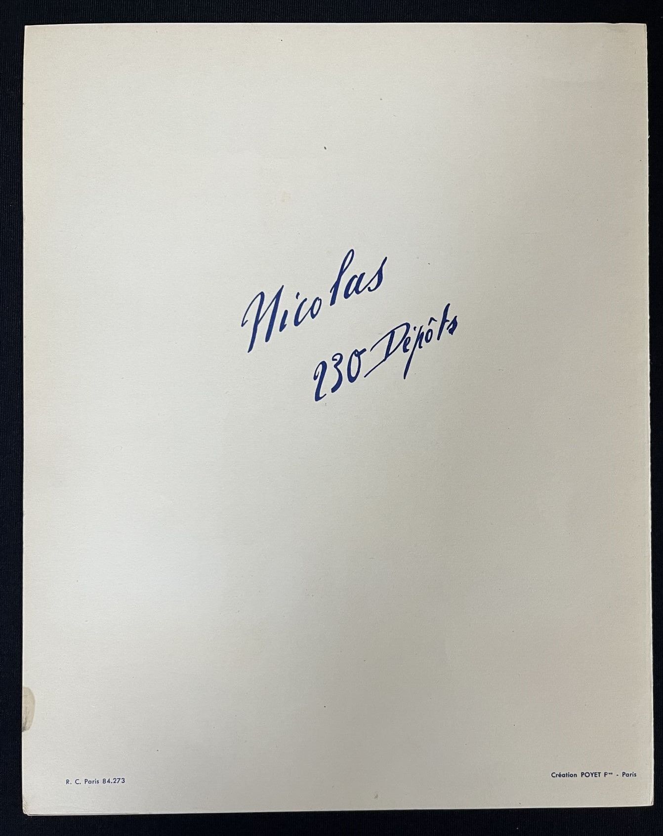 - Nicolas Wines. "Nectar & gouglou". Hardback leaflet illustrated by Jules Isnard DRANSY (1883-1945). In Paris, Création Poyet Frères. 29,2 x 23cm. Stains.