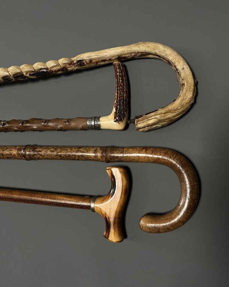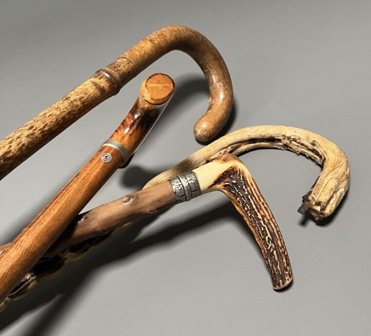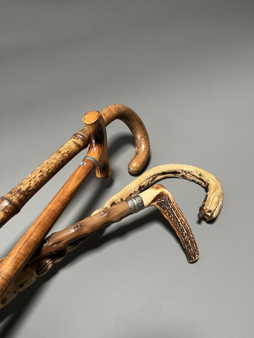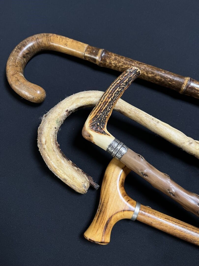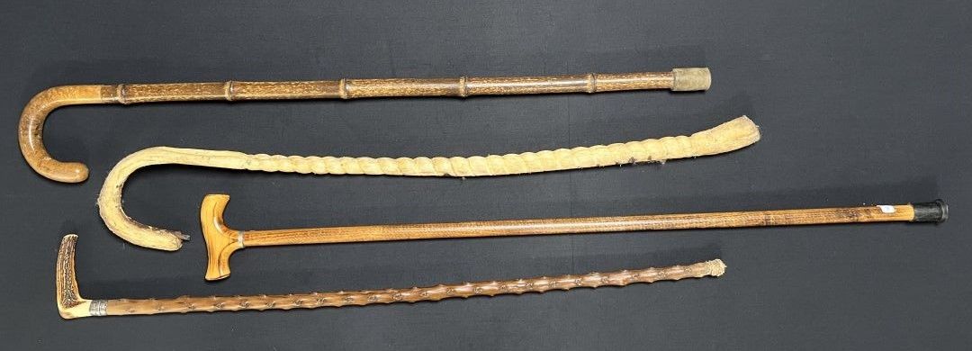 LOT of four andouillet, bamboo and wood canes, one with a si…