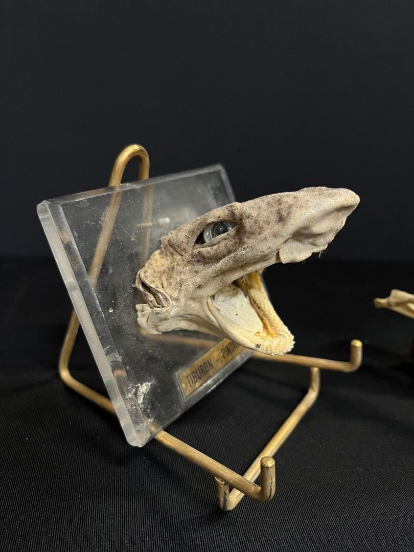 [Naturalia]. Head of a small naturalized spotted dogfish attached to a Plexiglas base.