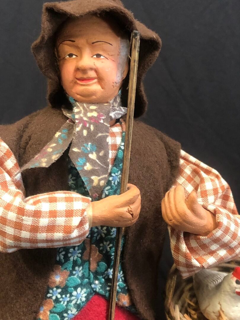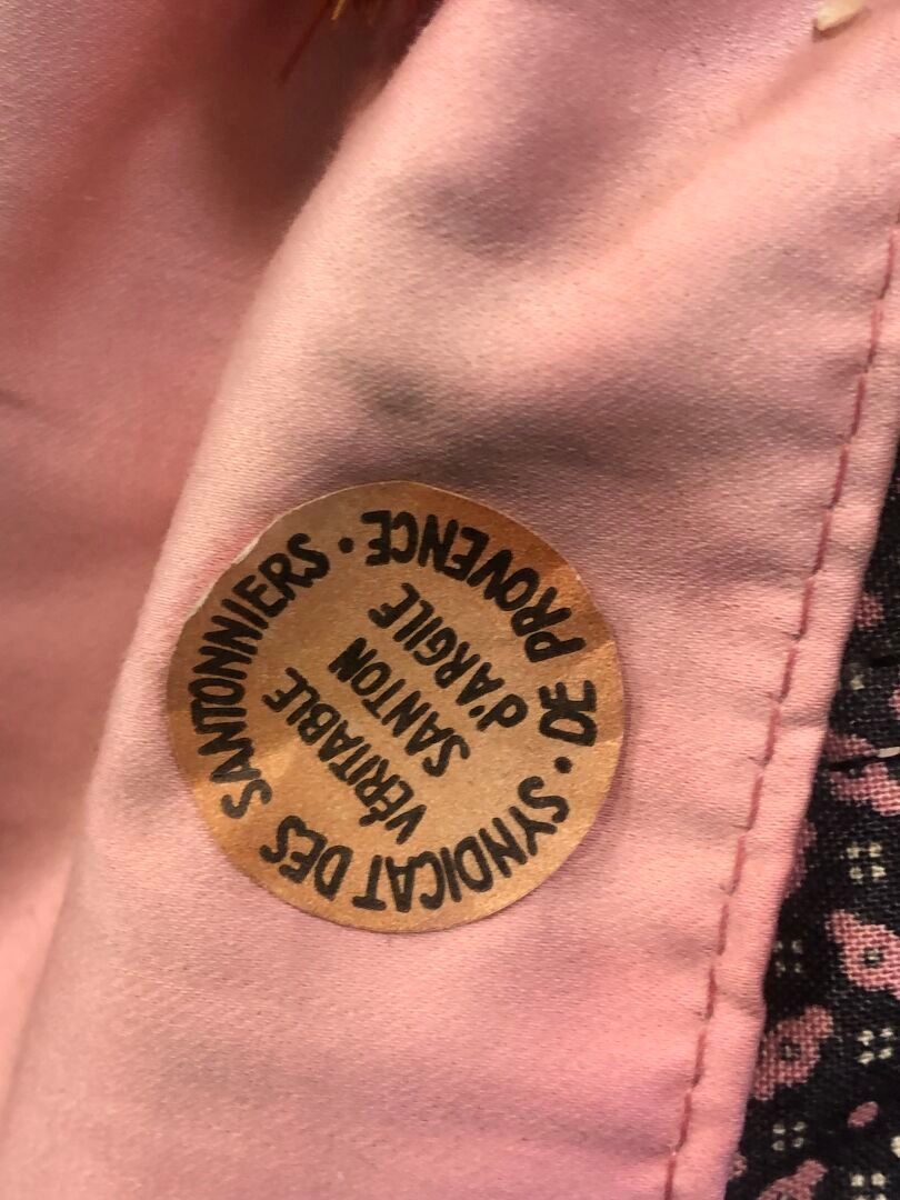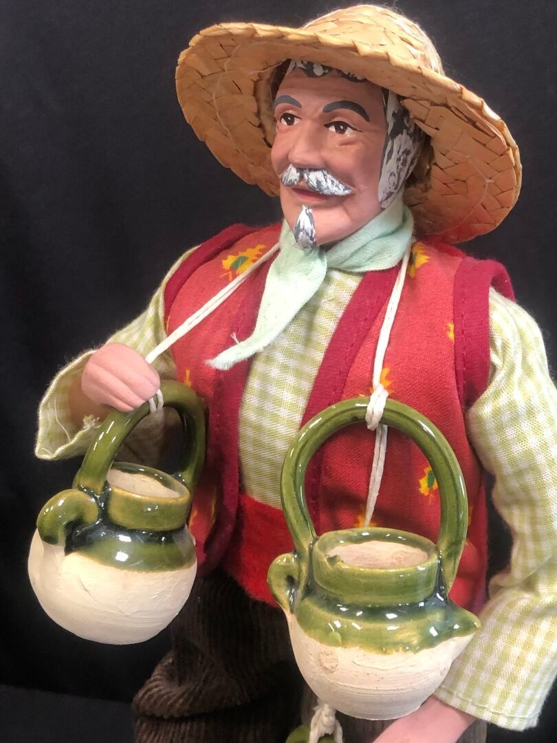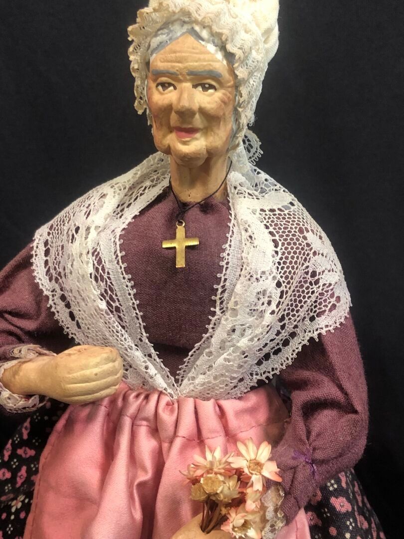 -SYNDICAT DES SANTONNIERS DE PROVENCE, subject representing a woman in traditional dress, a bouquet of dried flowers in her hand. The reverse bears the words "Librairie des Cordeliers, 86000 Poitiers". H: 24 cm.