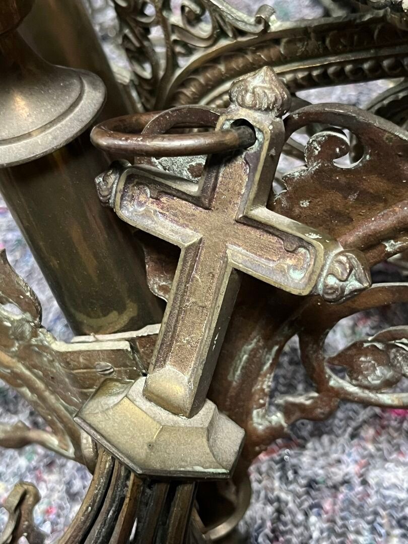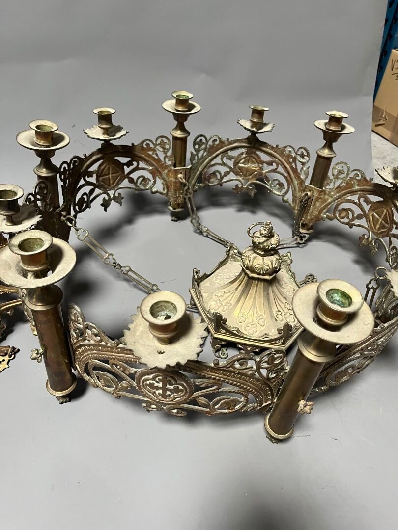 A SET of three Neo-Gothic style ormolu and brass chandeliers…
