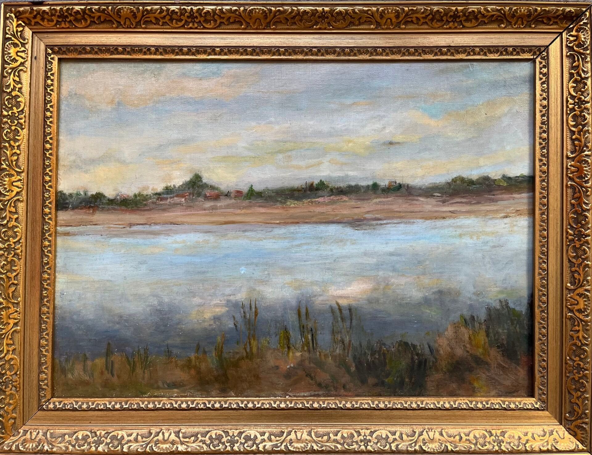 MODERN school View of a pond. Oil on canvas.