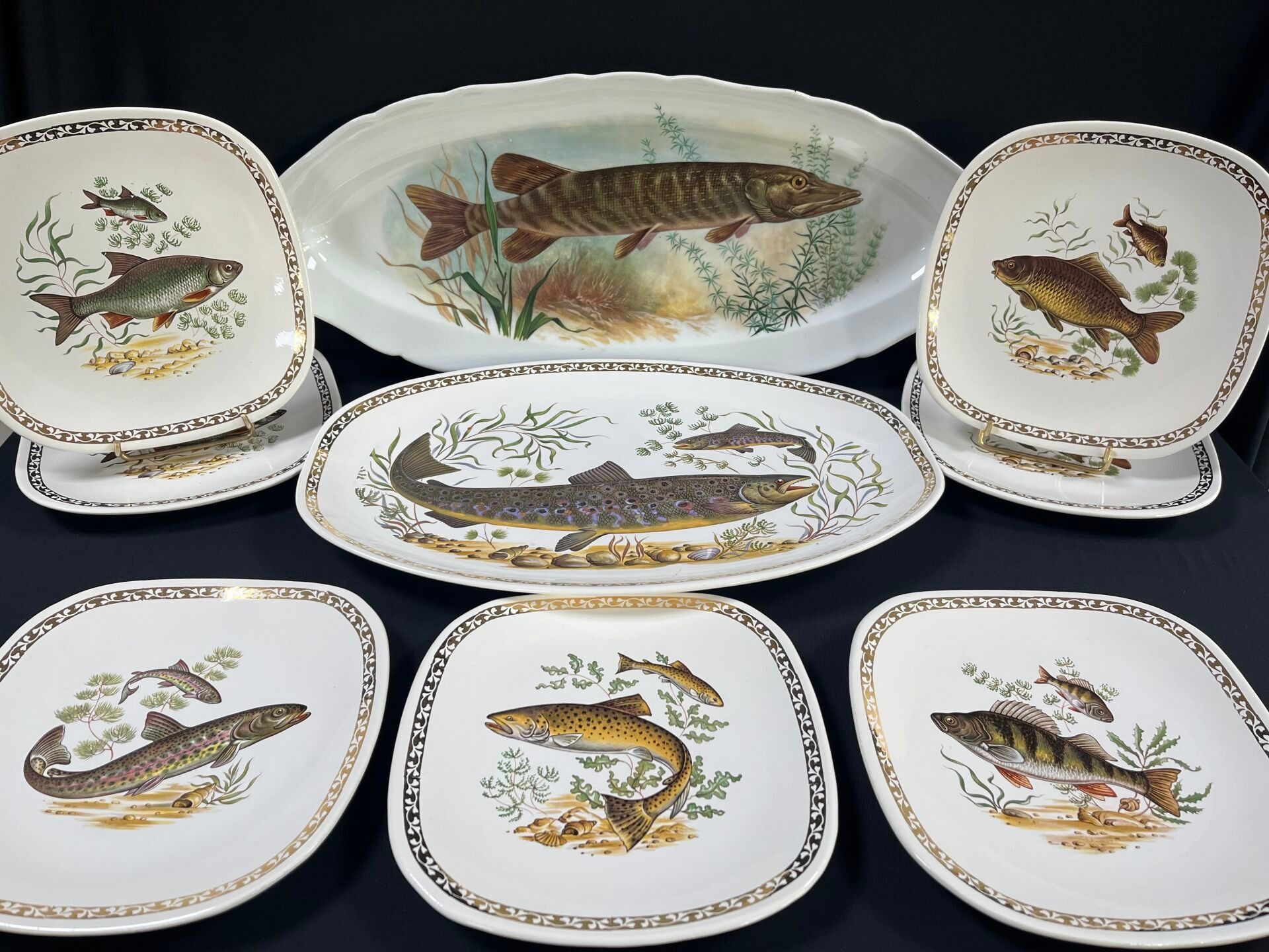 LONGCHAMP SEVEN square fish plates and one fish dish in fine…